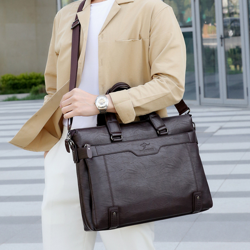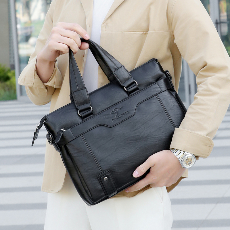 Emgrand Kangaroo 남성 핸드백 수평 비즈니스 서류 가방 캐주얼 크로스 바디 가방 남성 숄더 백 소프트 가죽 남성 가방스토어 가기