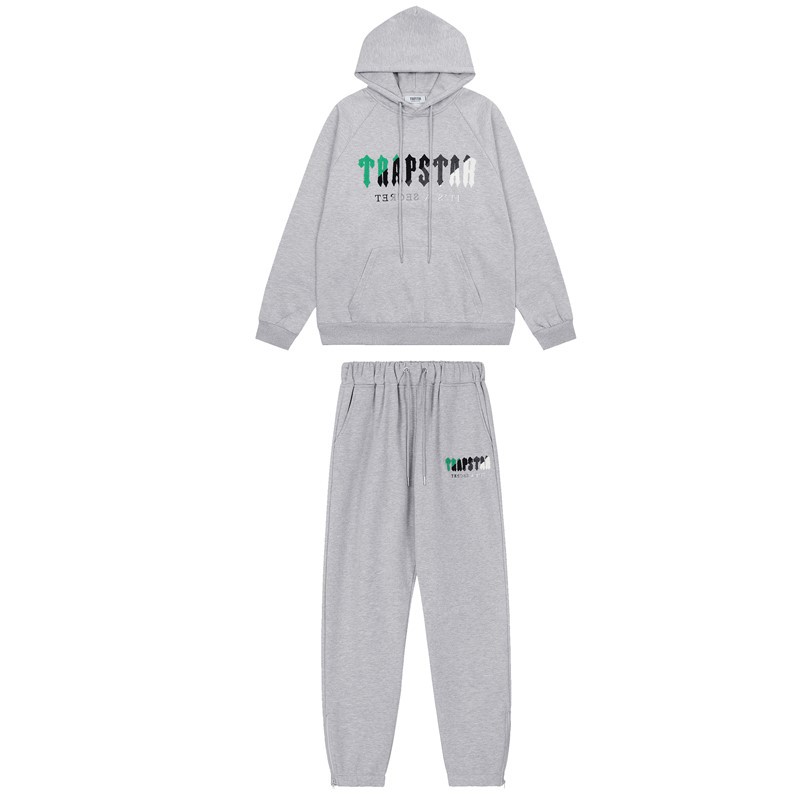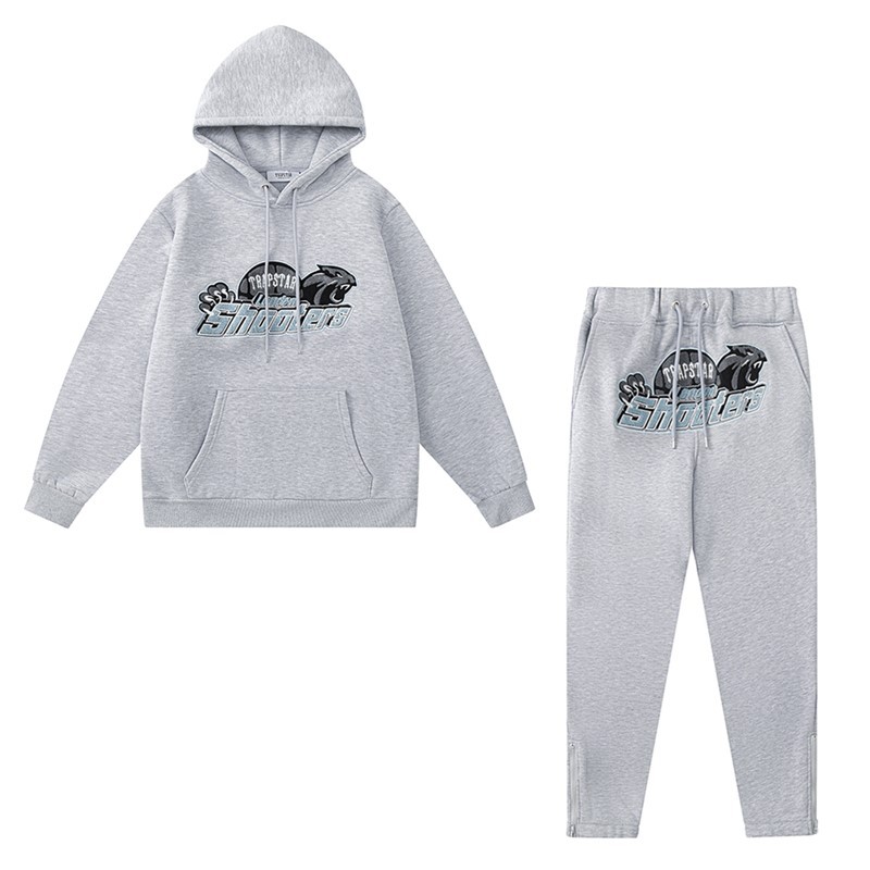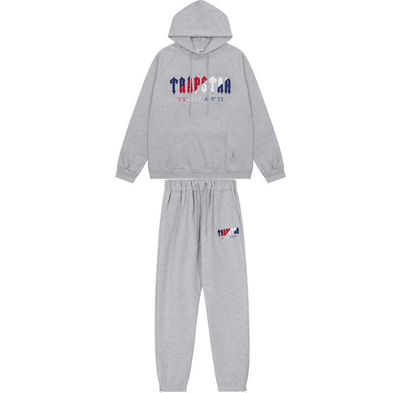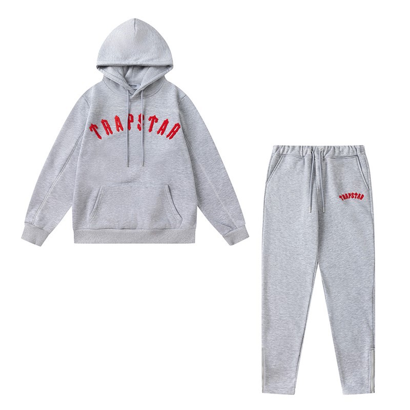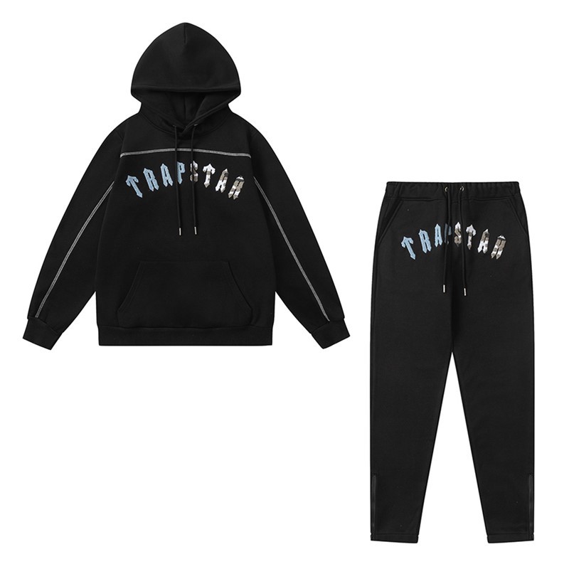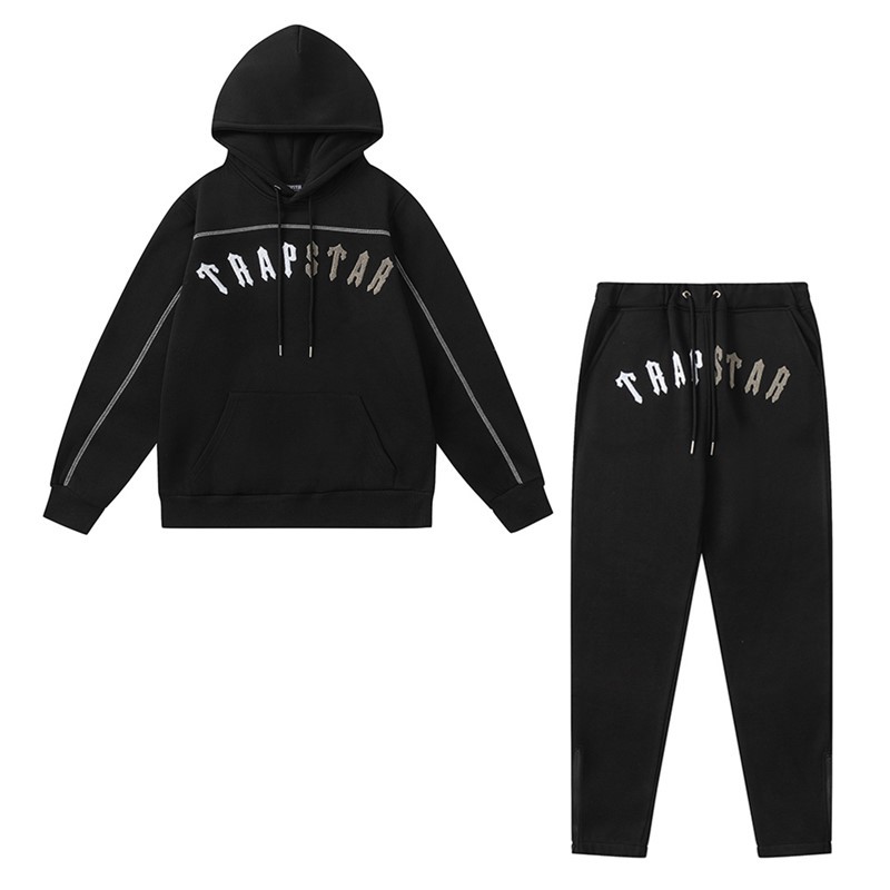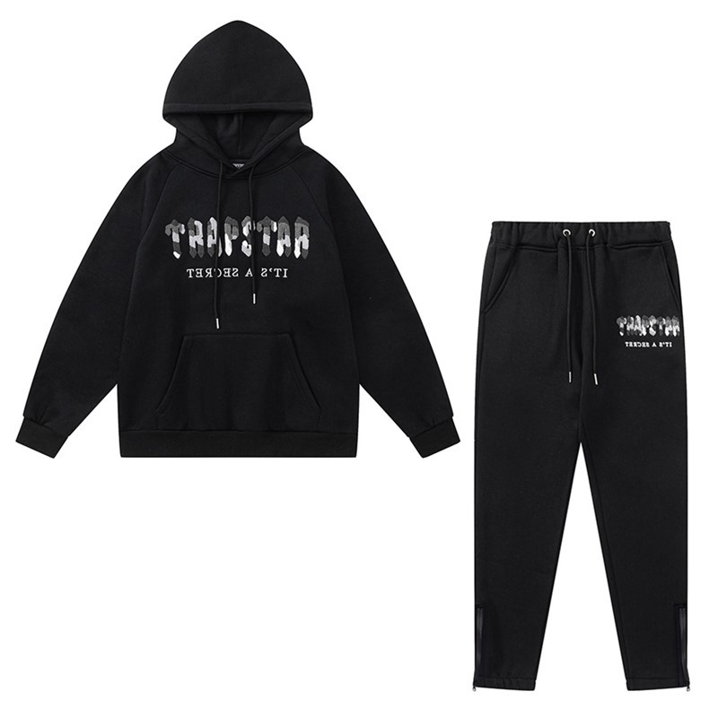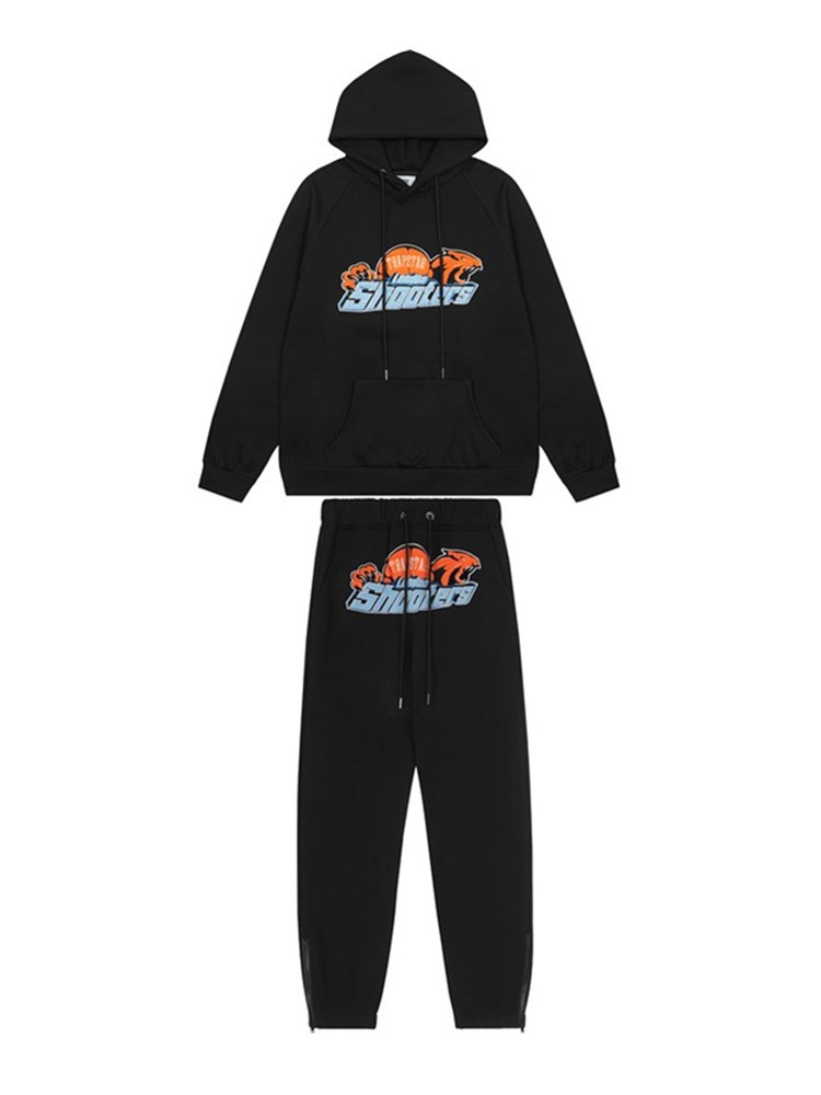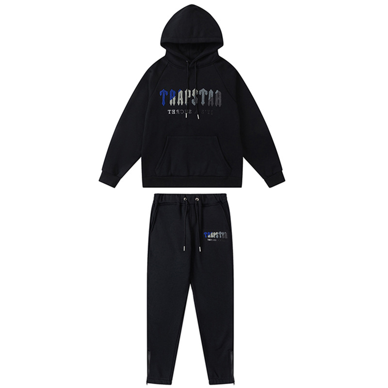 유럽과 미국의 Trapstar 빨간색과 검은 색 호랑이 수건 자수 남성 애호가 스웨터 바지 캐주얼 세트스토어 가기