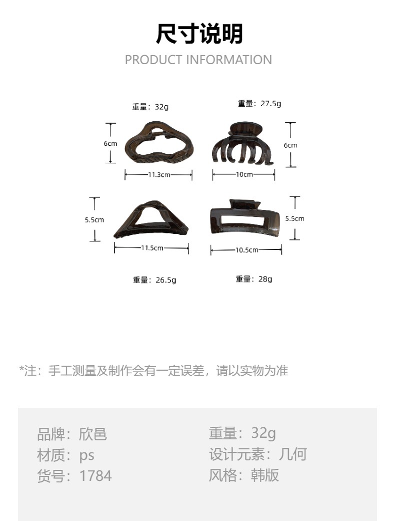 기질 기하학 조커 블랙 티 컬러 그랩 멀티 볼륨 13cm 머리 잡아 머리 상어 클립 머리 머리 액세서리스토어 가기