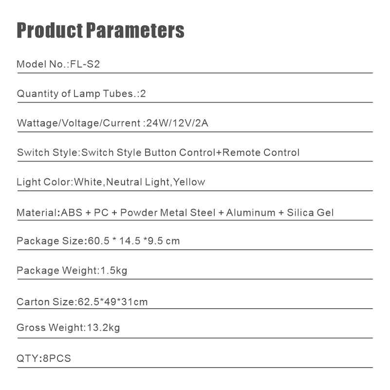 12.多种灯管型号可选,有双臂,四臂,六臂灯光,适合不同环境的消费者
