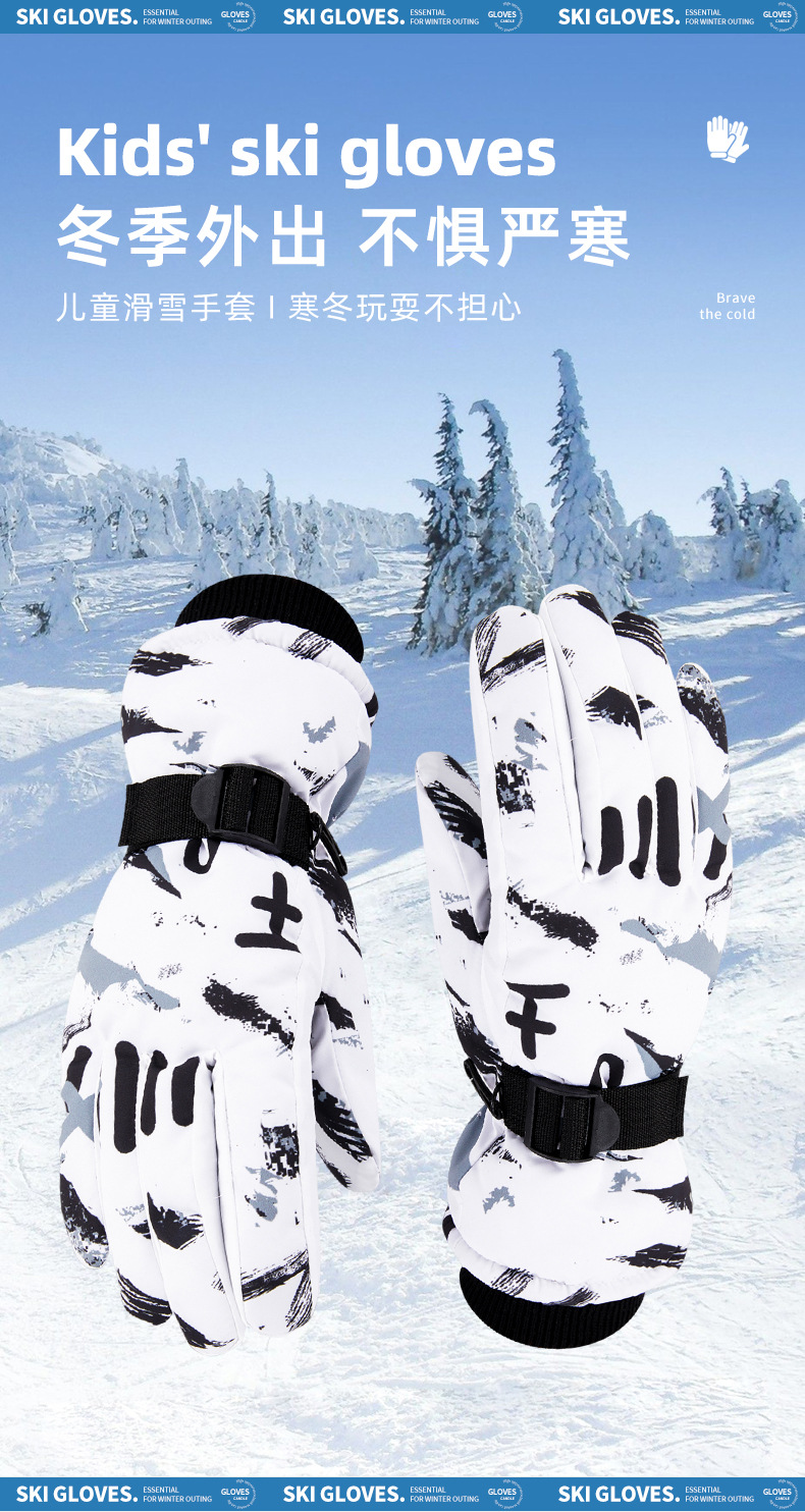 겨울 어린이 따뜻한 스키 장갑 두꺼운 야외 두꺼운 기모 방수 미끄럼 방지 낙서 따뜻한 장갑스토어 가기