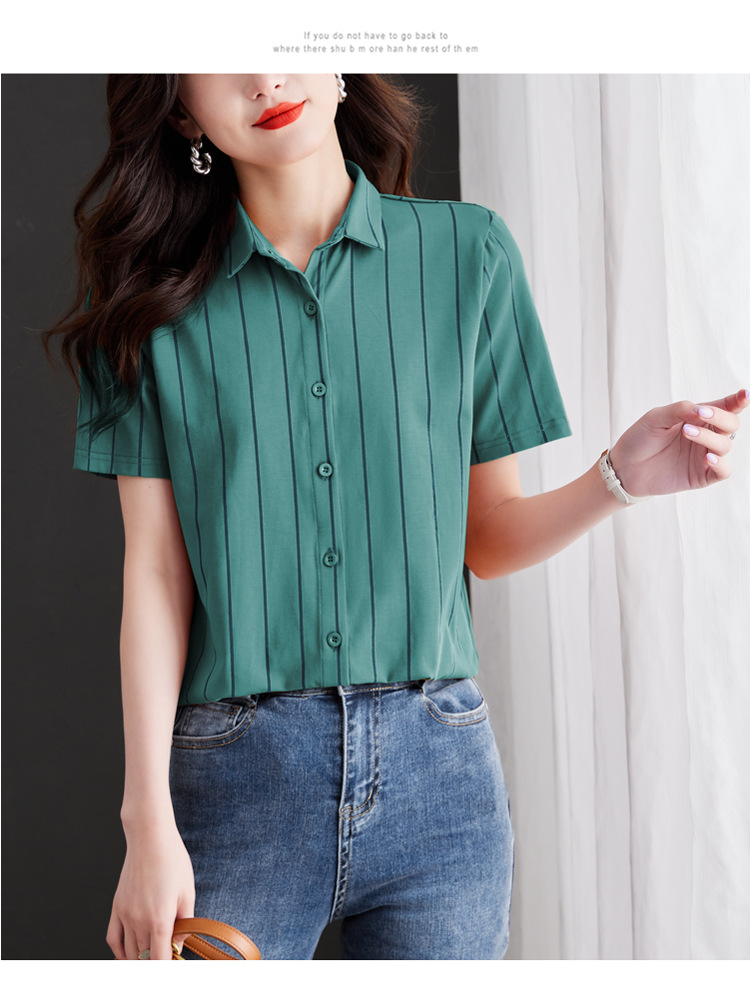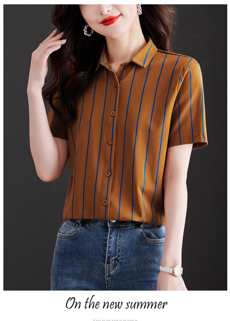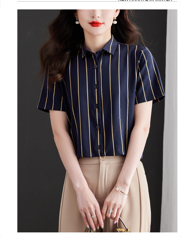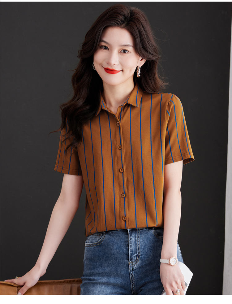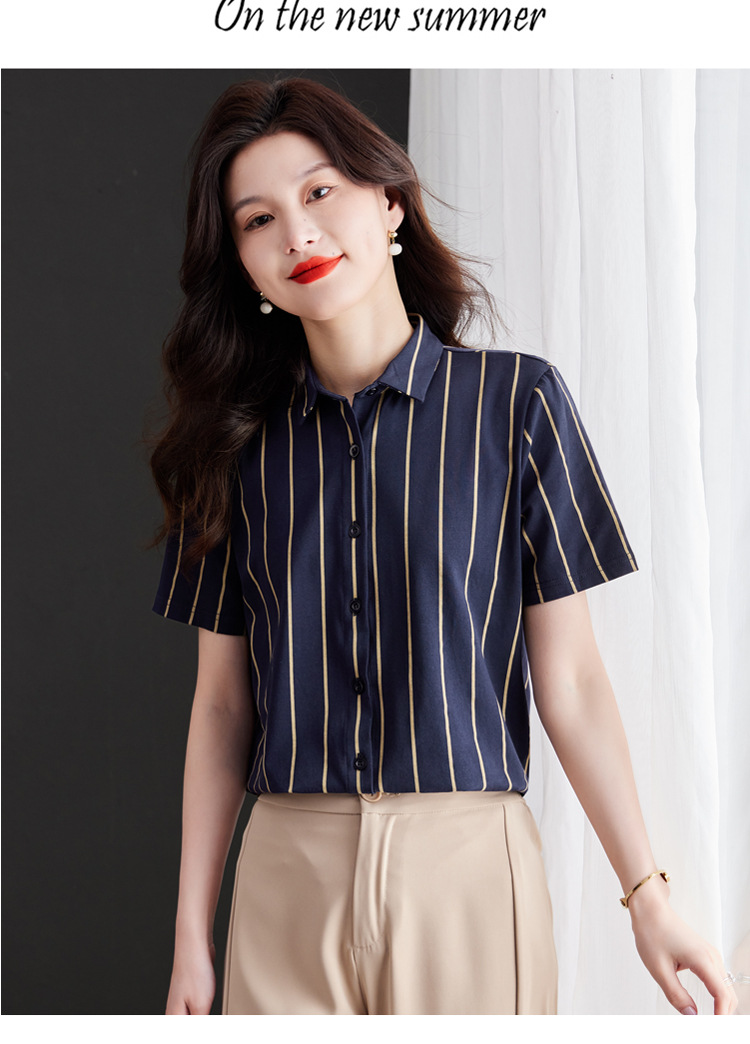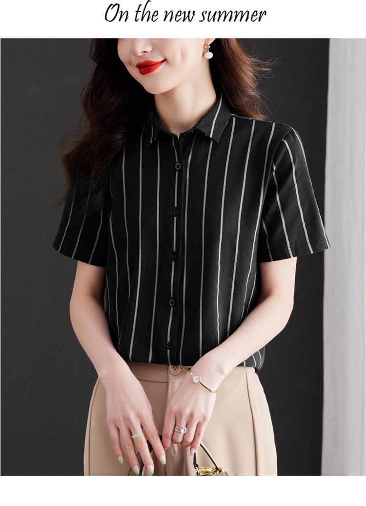 프랑스 스타일 폴로 칼라 셔츠 여자 짧은 소매 여름 모든 경기 니트 줄무늬 셔츠 2024 새로운 느슨한 내부 탑