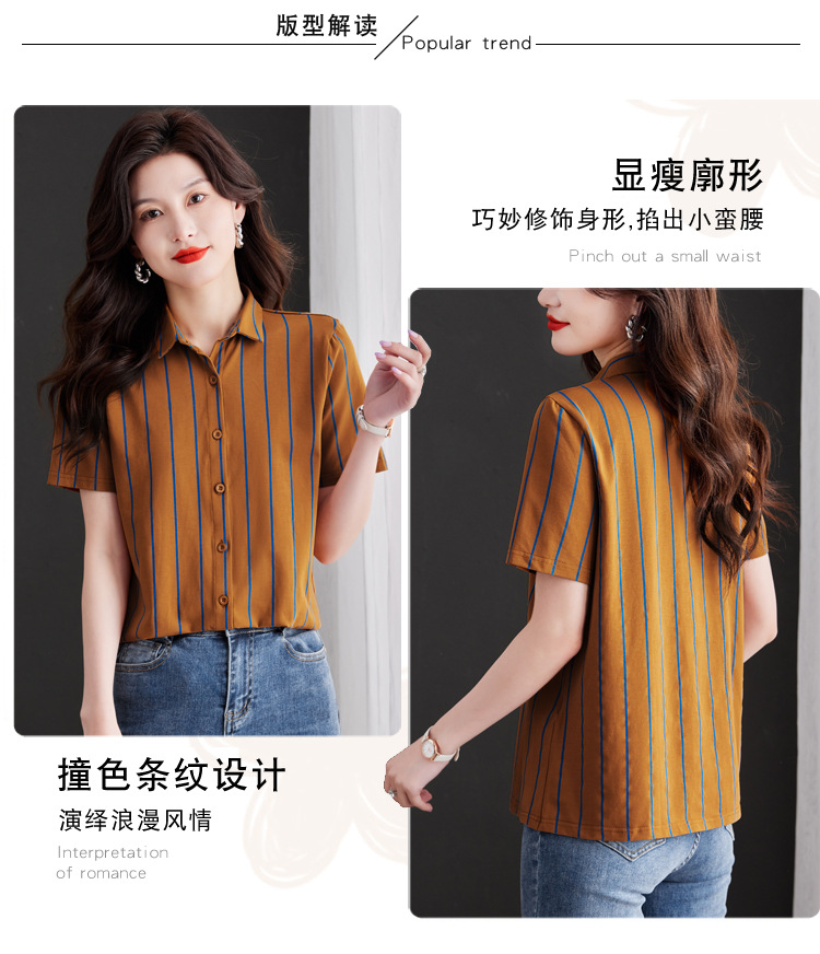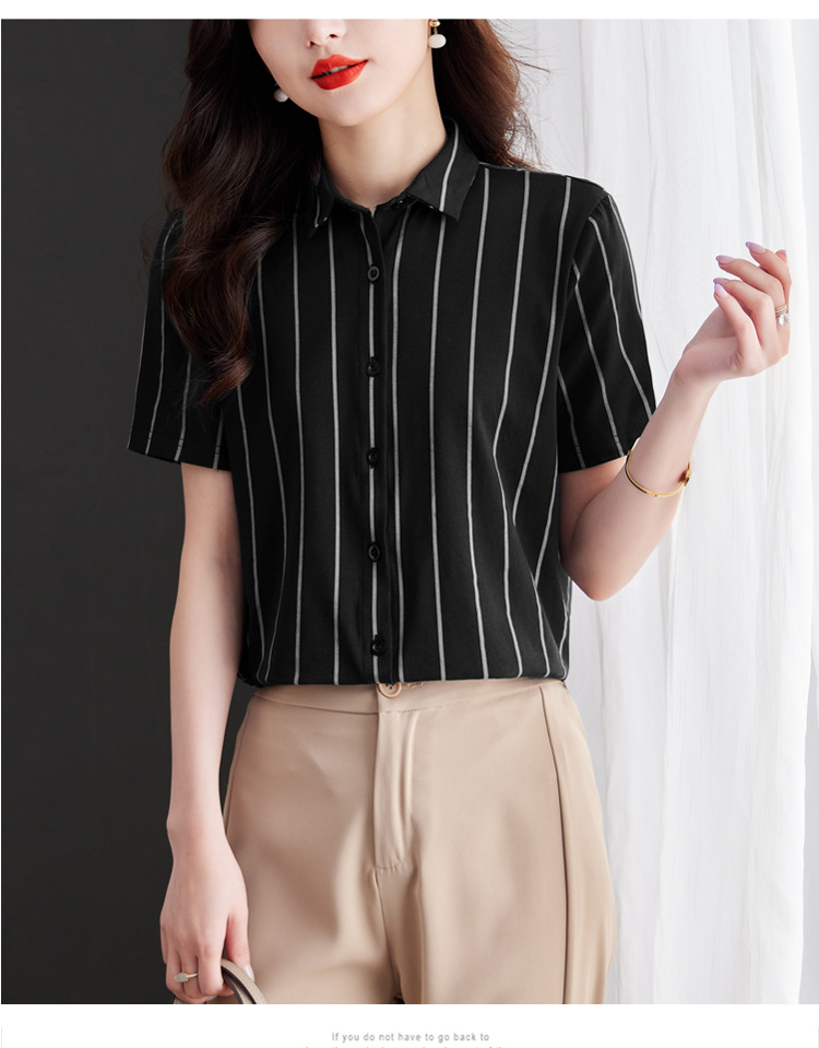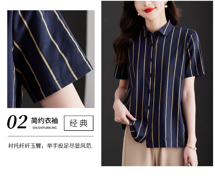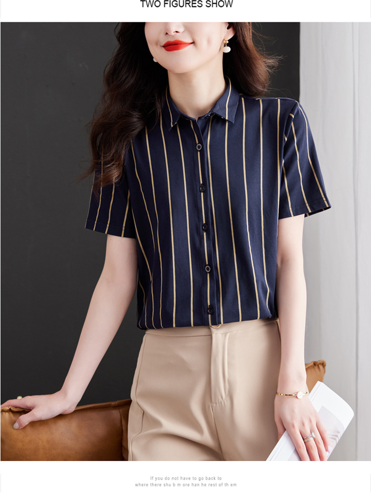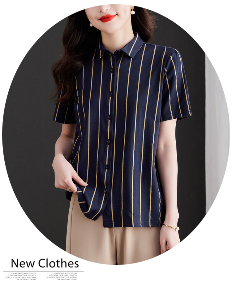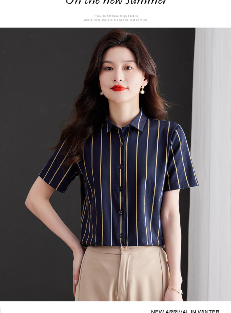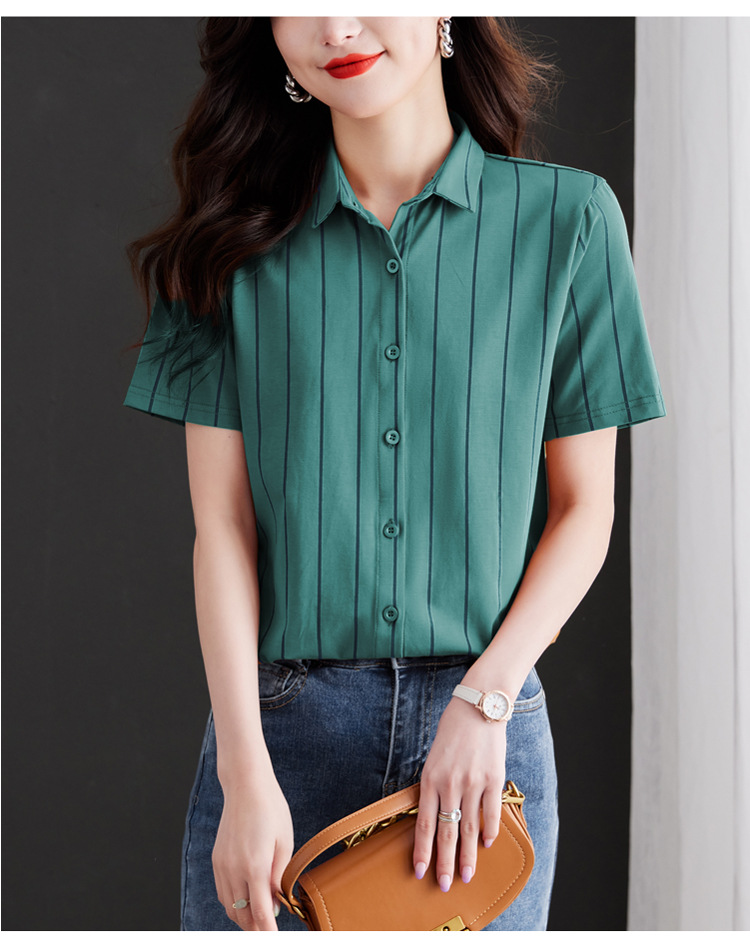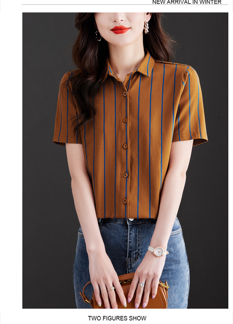 프랑스 스타일 폴로 칼라 셔츠 여자 짧은 소매 여름 모든 경기 니트 줄무늬 셔츠 2024 새로운 느슨한 내부 탑
