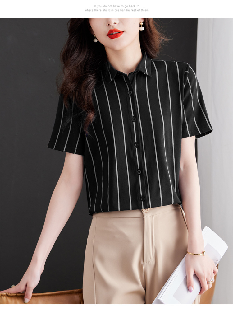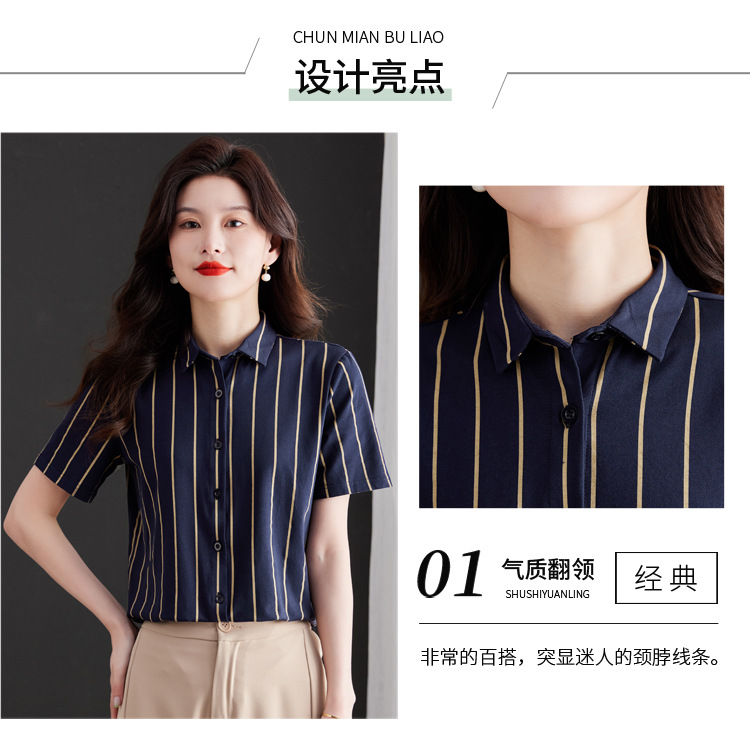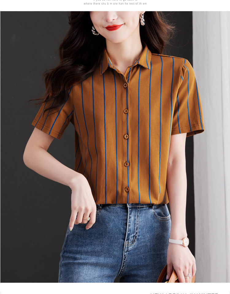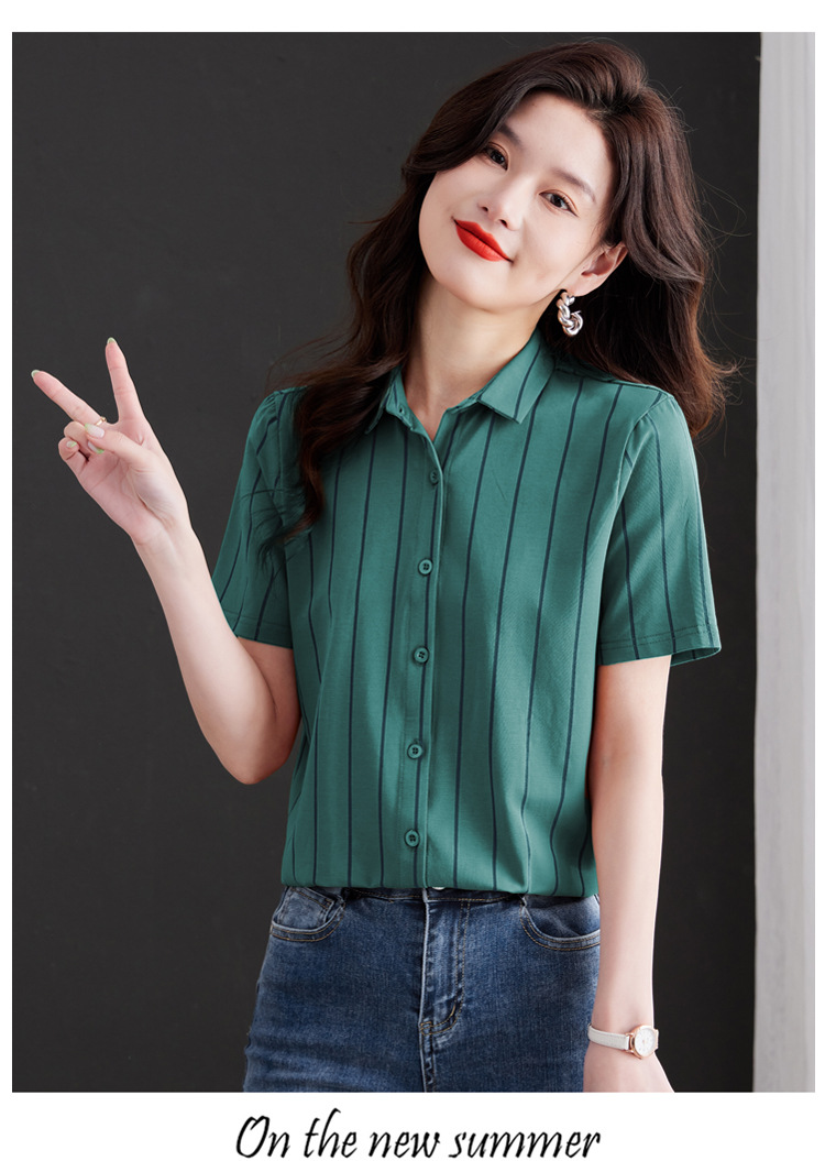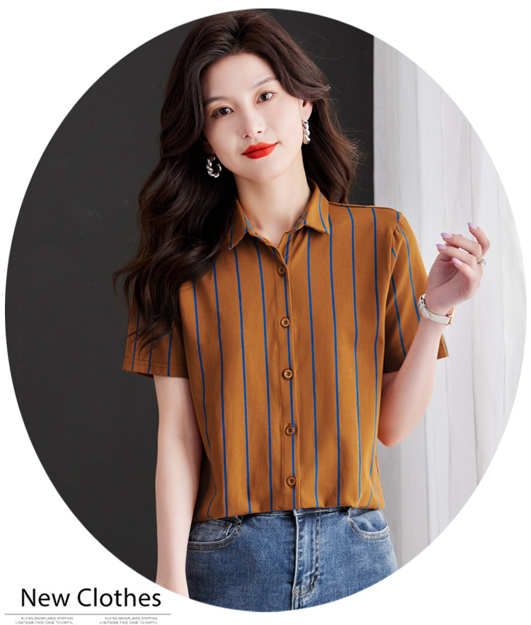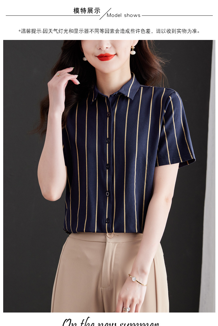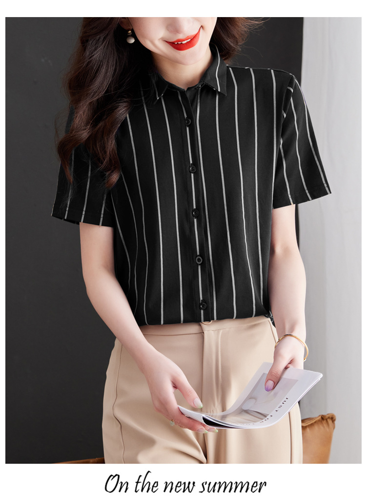프랑스 스타일 폴로 칼라 셔츠 여자 짧은 소매 여름 모든 경기 니트 줄무늬 셔츠 2024 새로운 느슨한 내부 탑