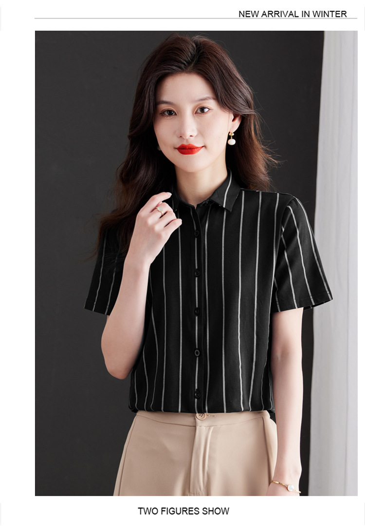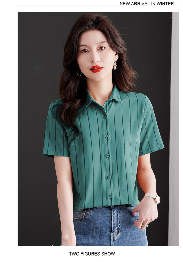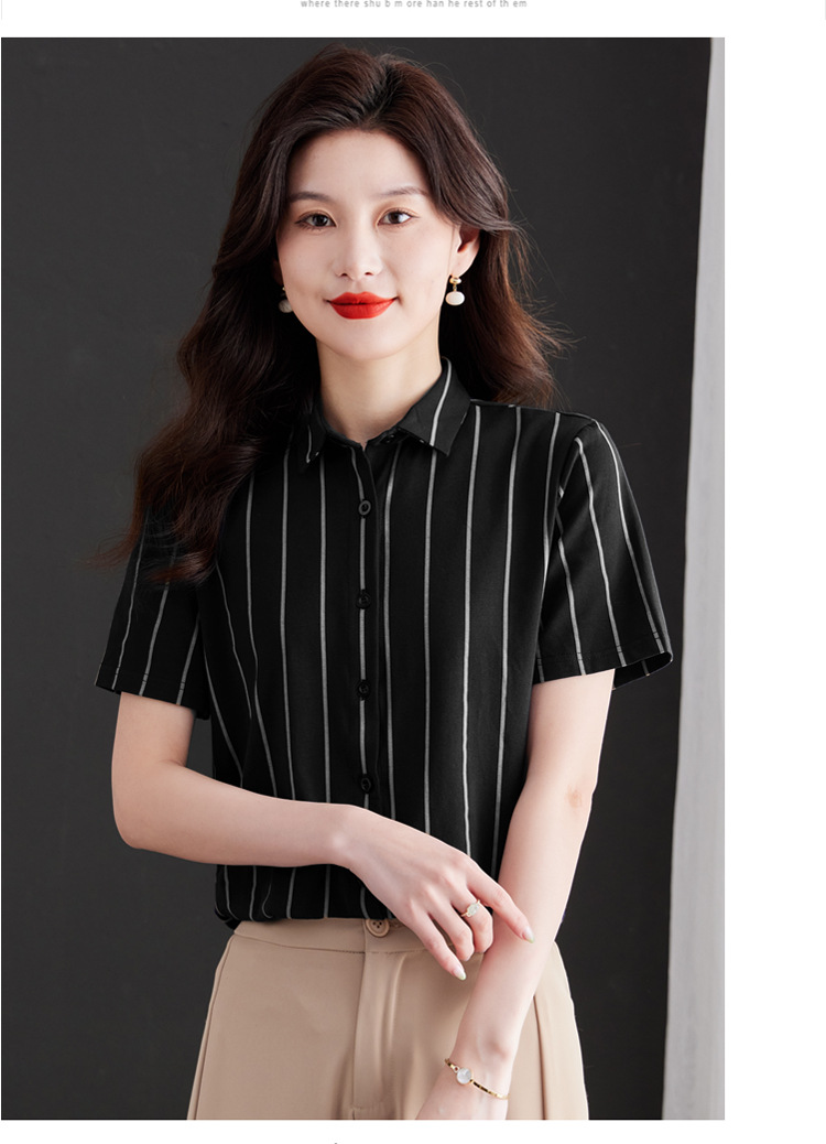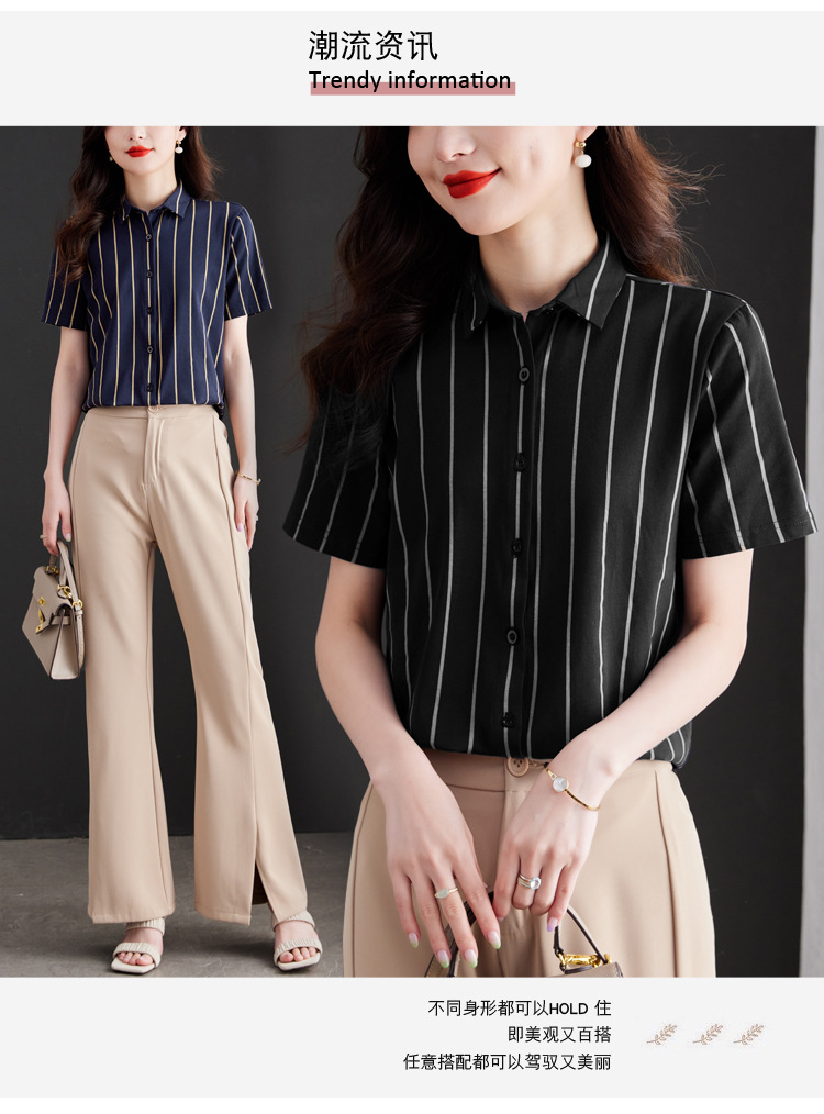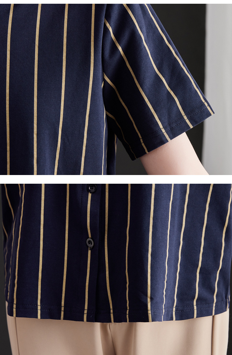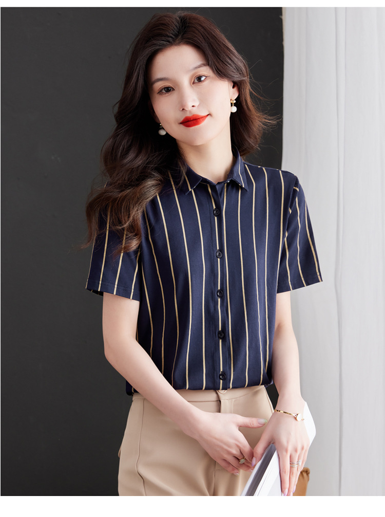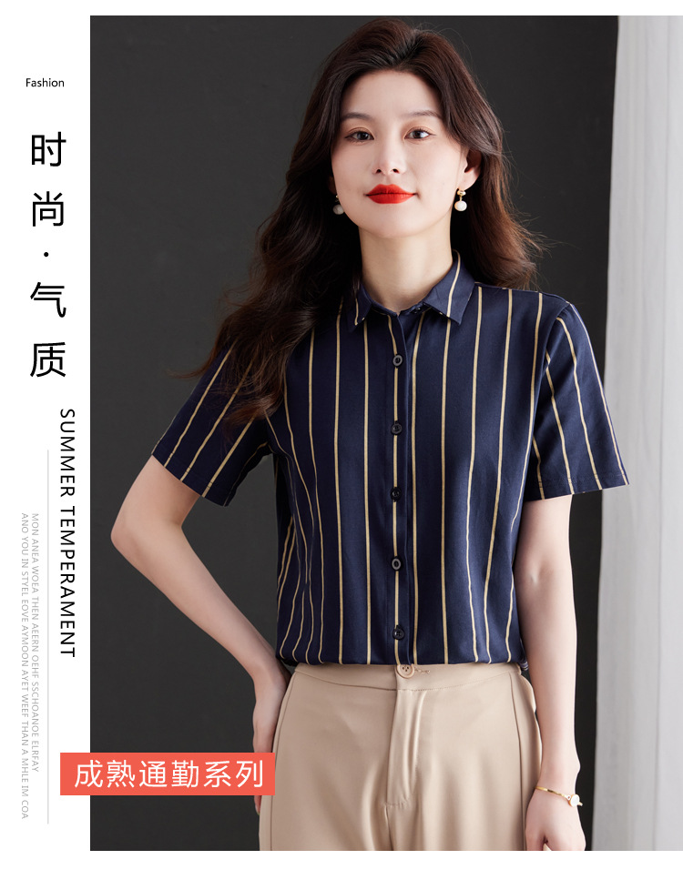 프랑스 스타일 폴로 칼라 셔츠 여자 짧은 소매 여름 모든 경기 니트 줄무늬 셔츠 2024 새로운 느슨한 내부 탑