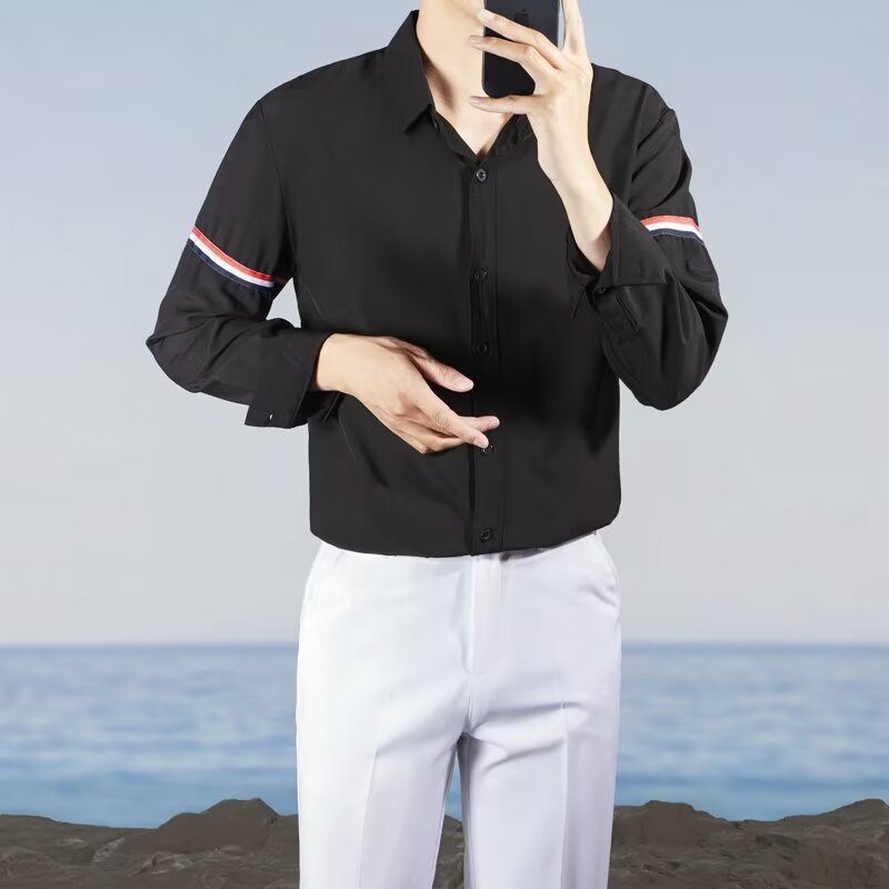 2024 레트로 셔츠 남자 여름 홍콩 스타일 학생 느슨한 틈새 디자인 감각 재미있는 새로운 남성 탑