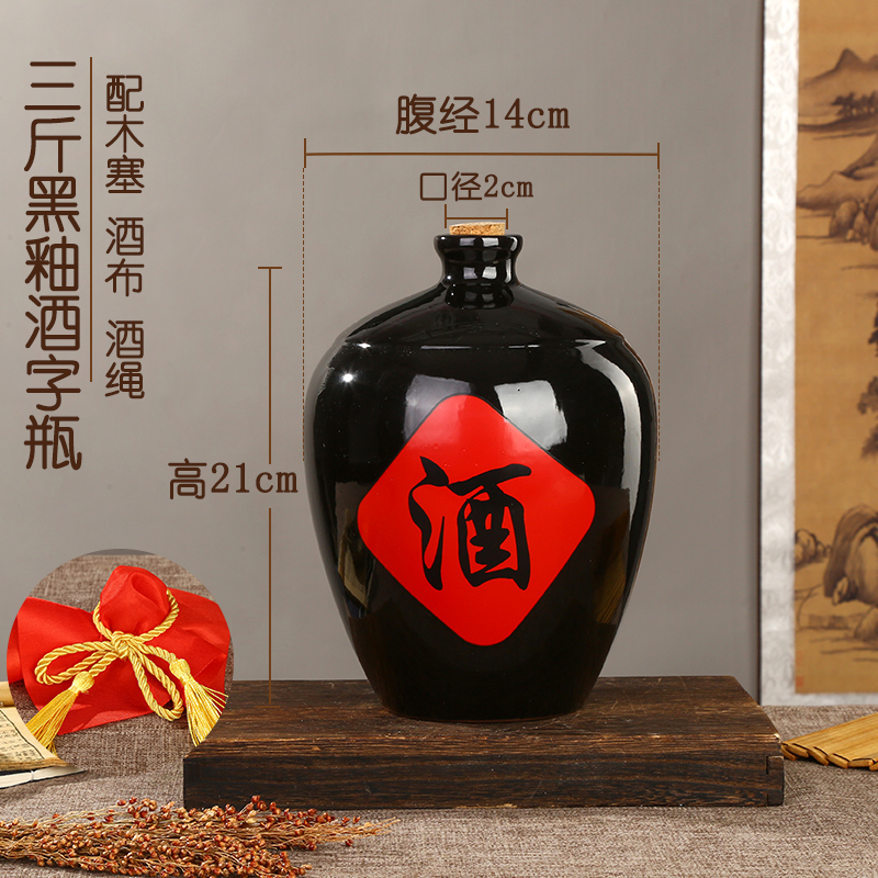 • 2.5kg 검은 유약 와인 단어와 천 로프