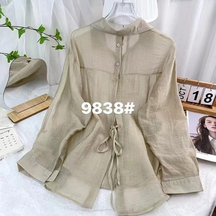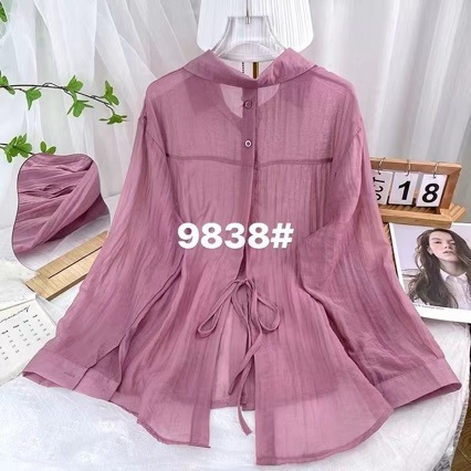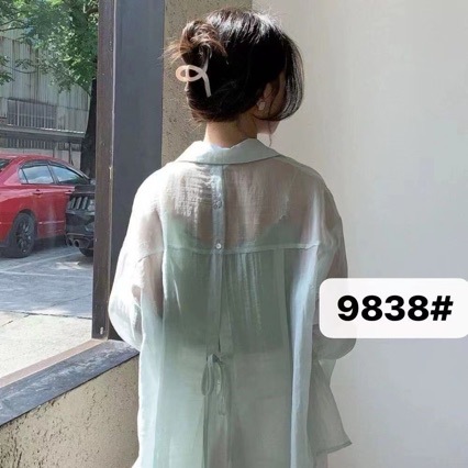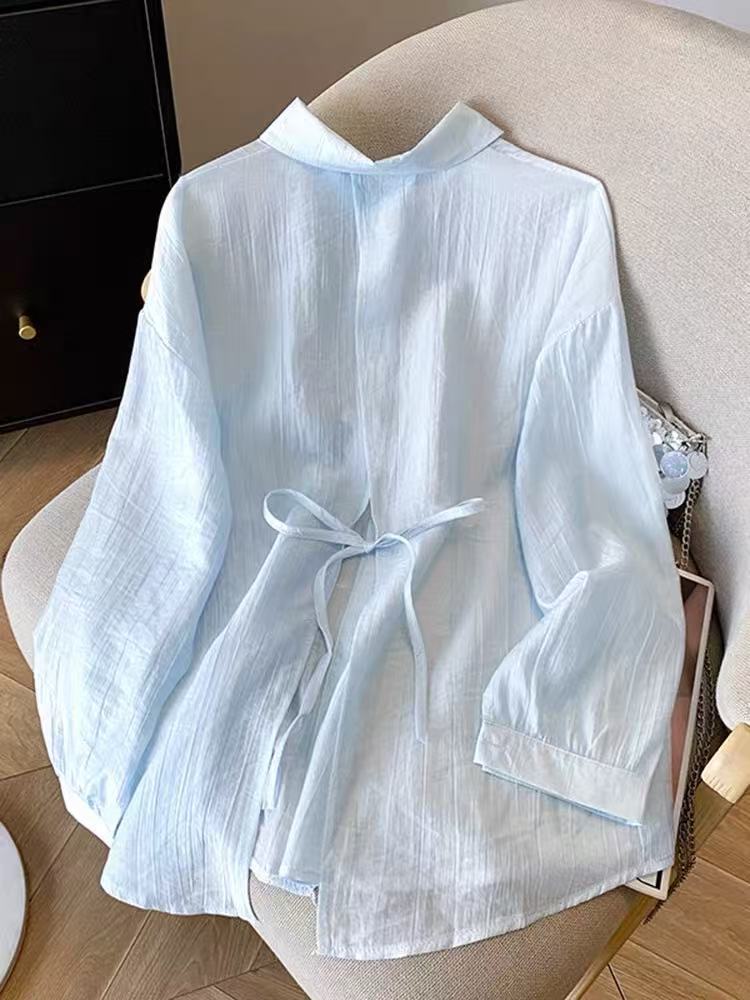 디자인 센스 백 슬릿 타이 아이스 실크 긴팔 자외선 차단 셔츠 여성 여름 루즈 틈새 아우터 에어컨 탑 얇은스토어 가기