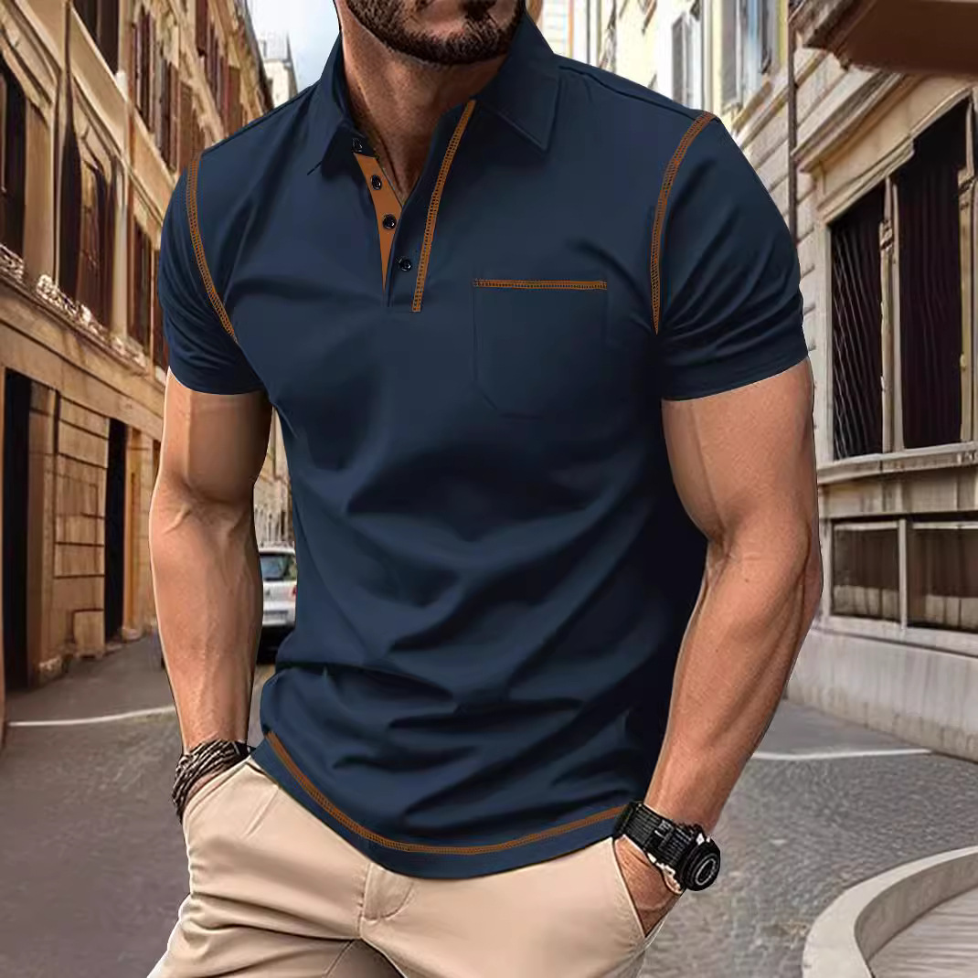 2024 년 여름 유럽과 미국의 남성 반팔 POLO 셔츠 대외 무역 남성 옷깃 티셔츠 크로스 보더 코트 컬러 매칭 폴로 남성