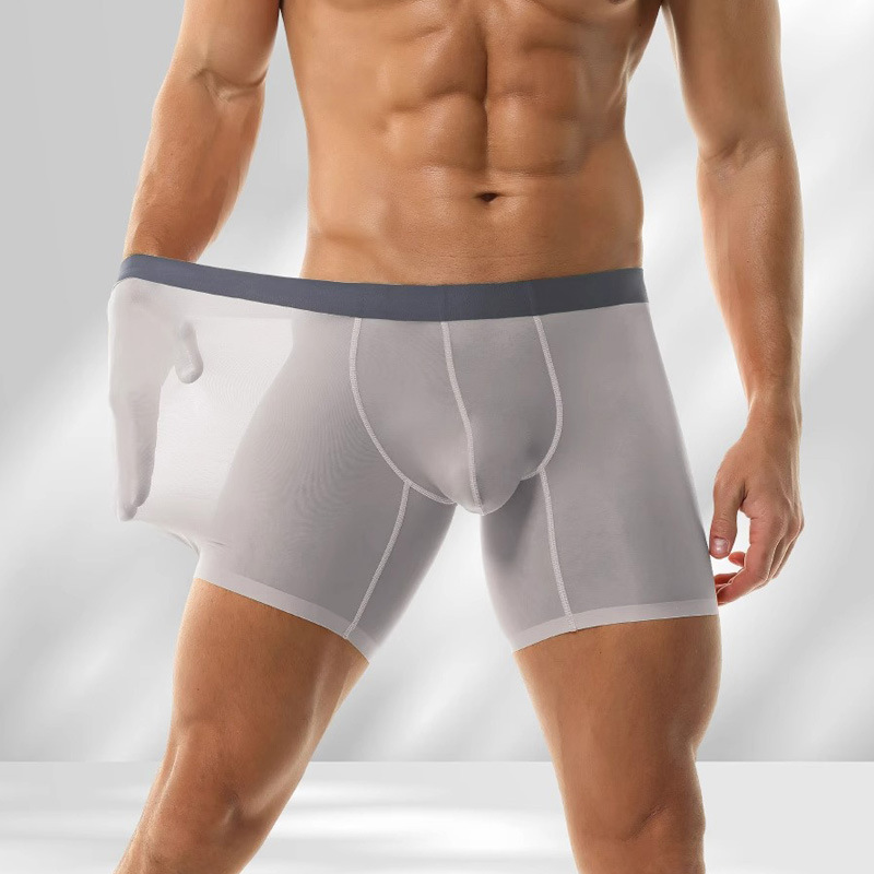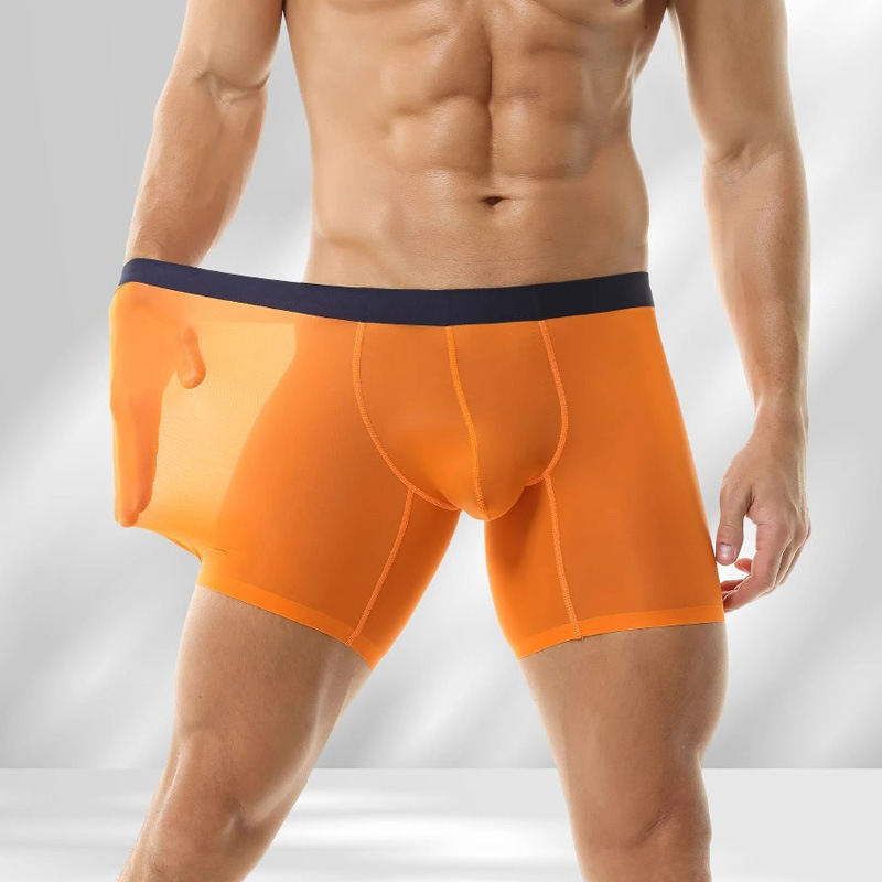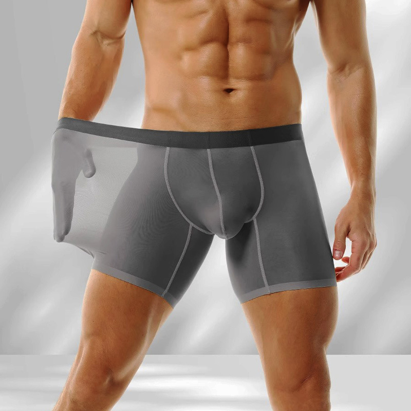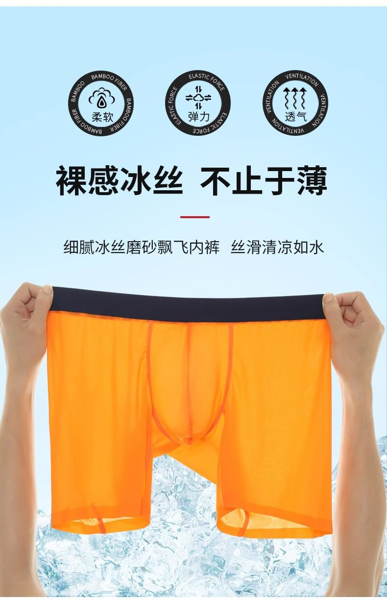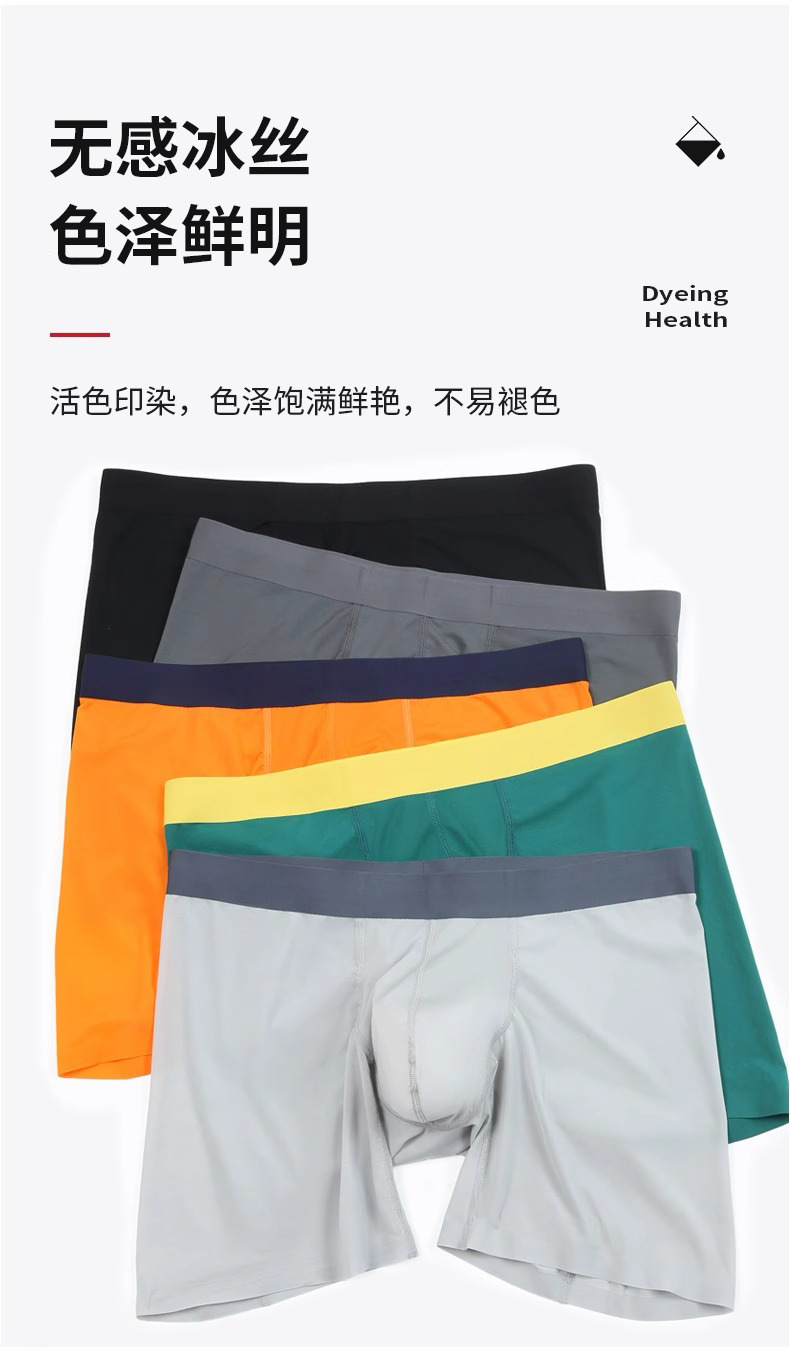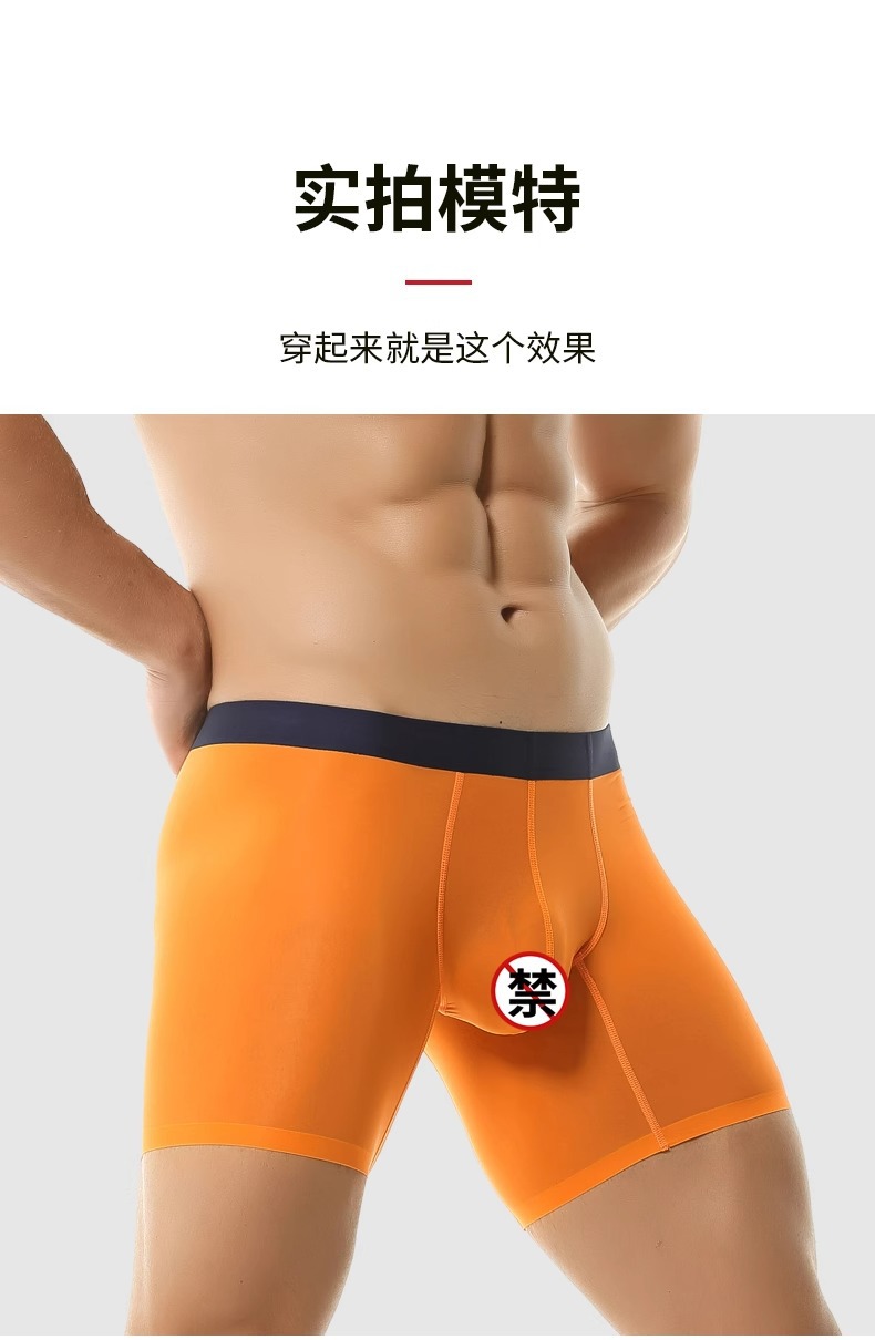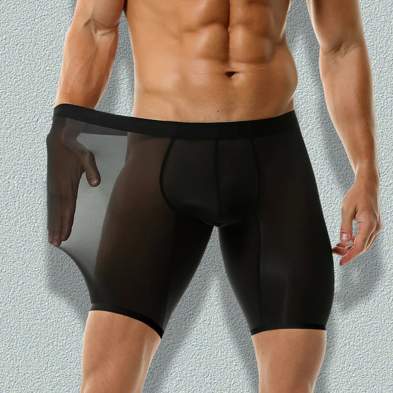 초박형 남성용 아이스 실크 롱 팬티, 다리 모양을 잡아주는 플랫 코너 팬티, 고탄력 무봉제 U자형 3부 타이트 스포츠 레깅스스토어 가기