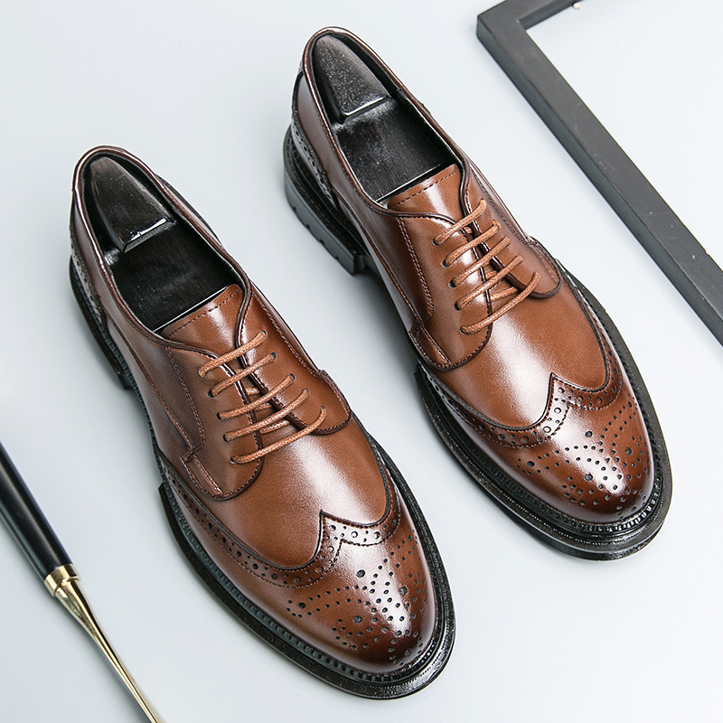 캐주얼 가죽 신발 남성 영국 지적 비즈니스 원피스 작업 신랑 웨딩 나이트 샵 스타일리스트 한국식 높이 증가 남성 신발스토어 가기