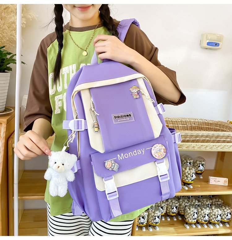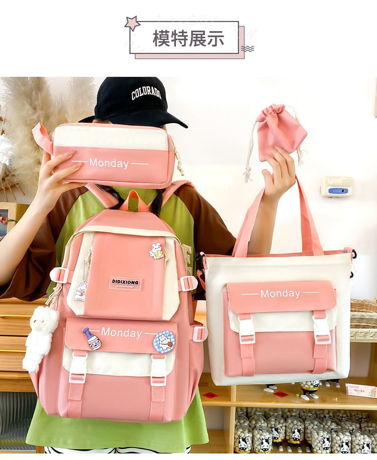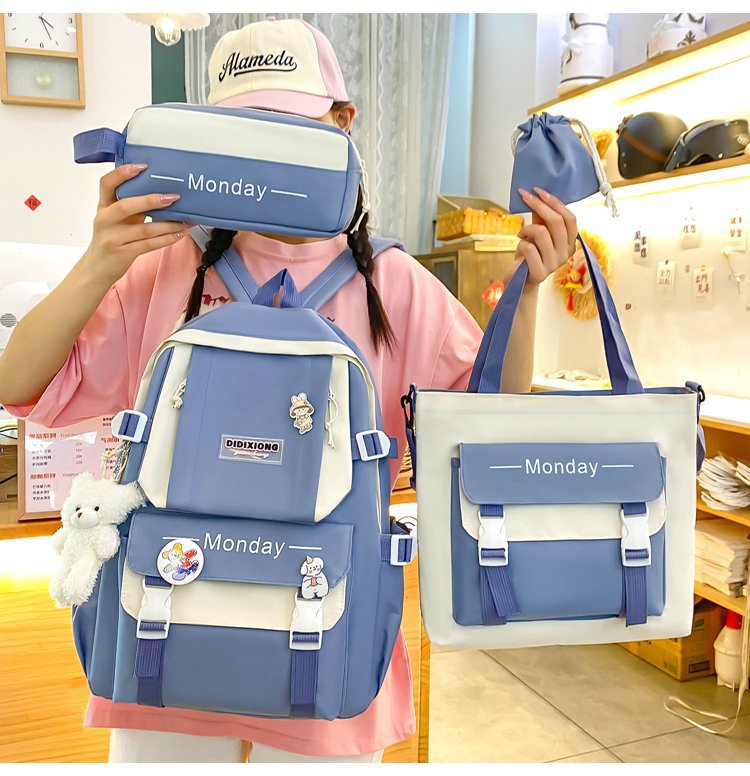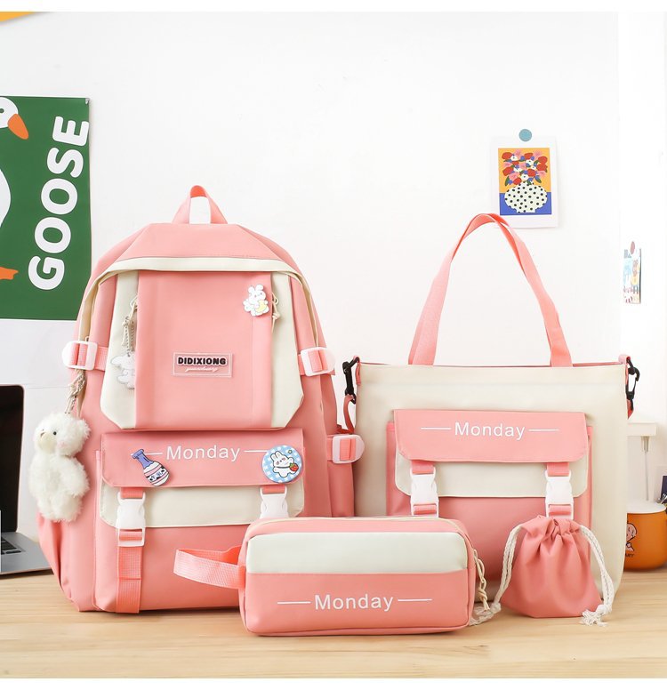 새로운 Ins 작은 신선한 학년 3 ~ 6 대용량 중학교 고등학생 4 피스 배낭스토어 가기