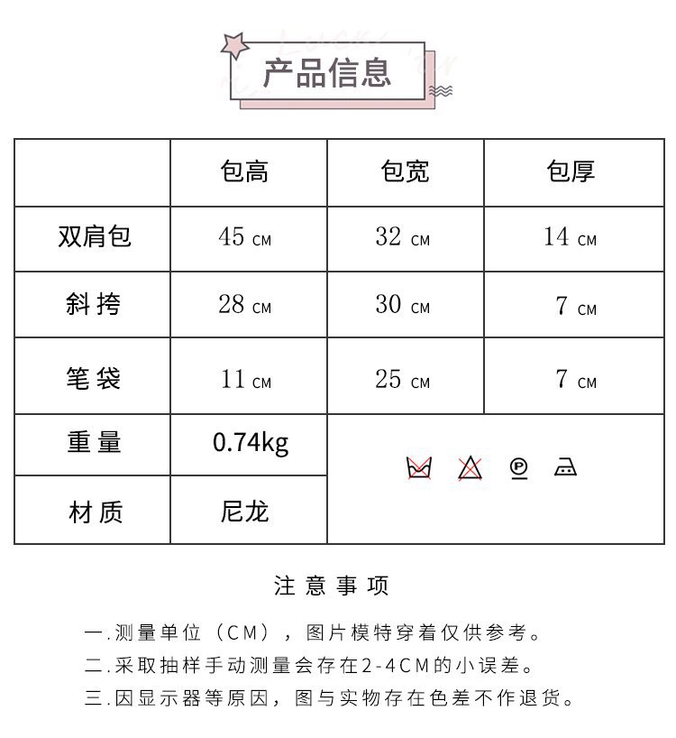 새로운 Ins 작은 신선한 학년 3 ~ 6 대용량 중학교 고등학생 4 피스 배낭