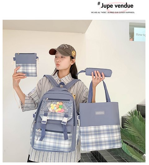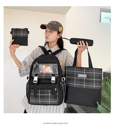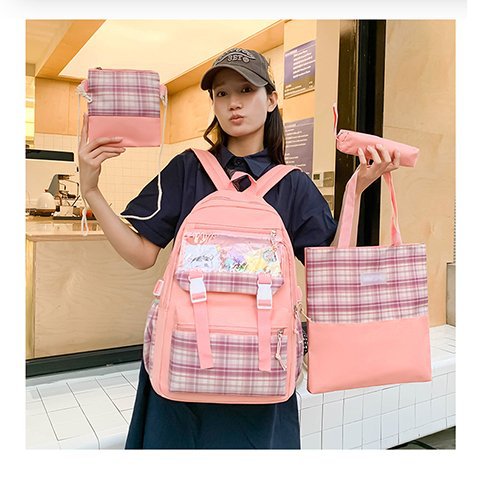 한국식 모리 4 피스 세트 작은 신선한 단색 단순 올 매치 캠퍼스 중학교 고등학교 대학생 컴퓨터 배낭스토어 가기
