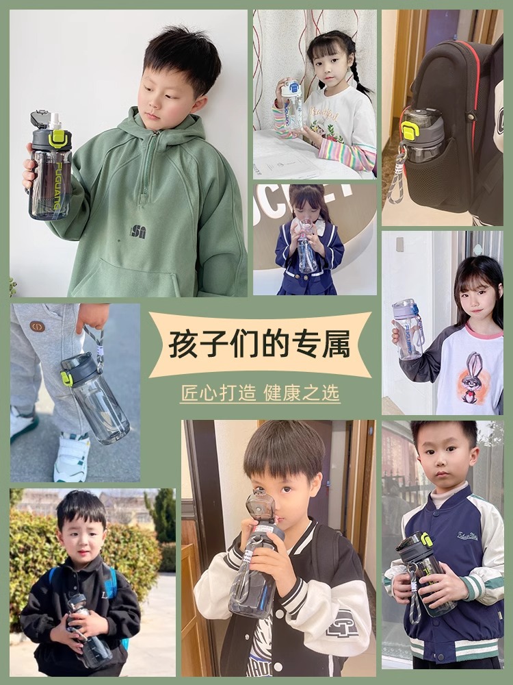 Fuguang 어린이 워터 컵 남녀 초등 학생 특수 밀짚 휴대용 주전자 여름 스포츠 가을 플라스틱 컵스토어 가기