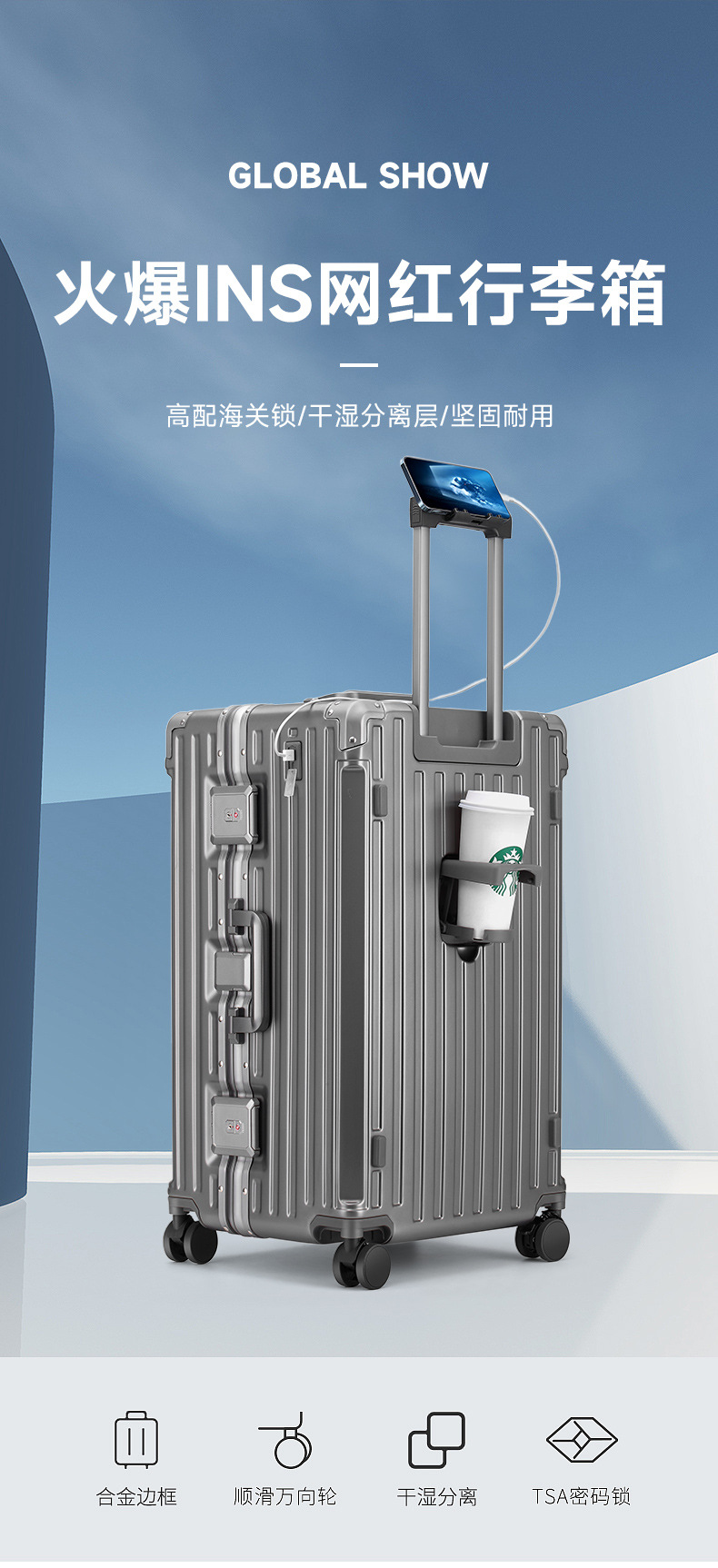 수출 일본 비밀번호 수하물 케이스 남성 대용량 조용한 유니버설 휠 두꺼운 알루미늄 프레임 수하물 케이스 여성용 수하물 케이스 34 인치