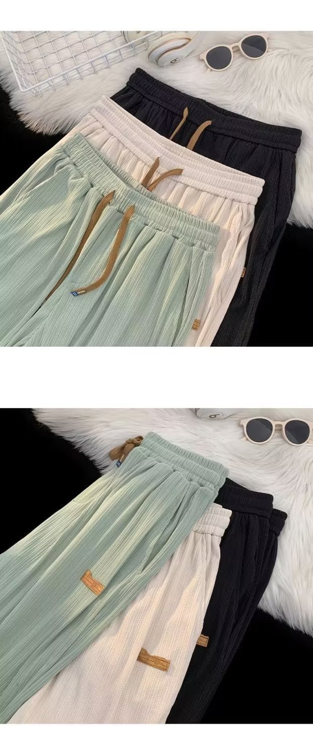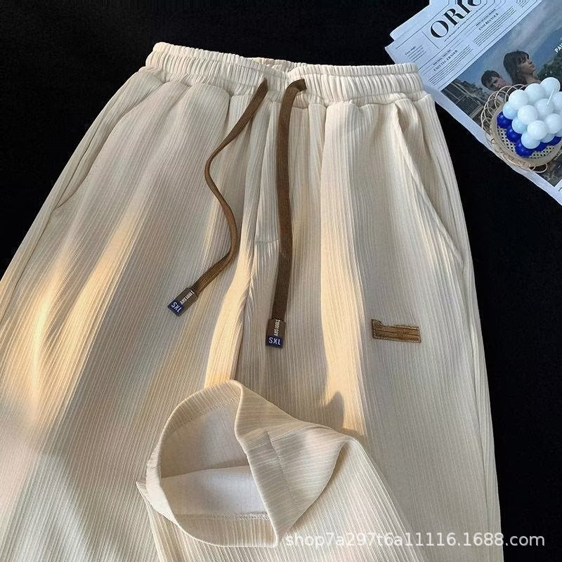 아이스 실크 스트레이트 펜던트 바지 남성 여름 얇은 하이 엔드 와이드 레그 바지 디자인 패션 브랜드 루즈 캐주얼 바지스토어 가기