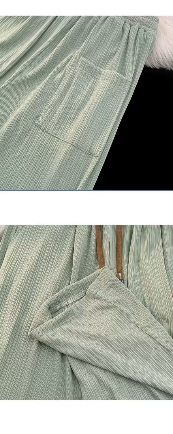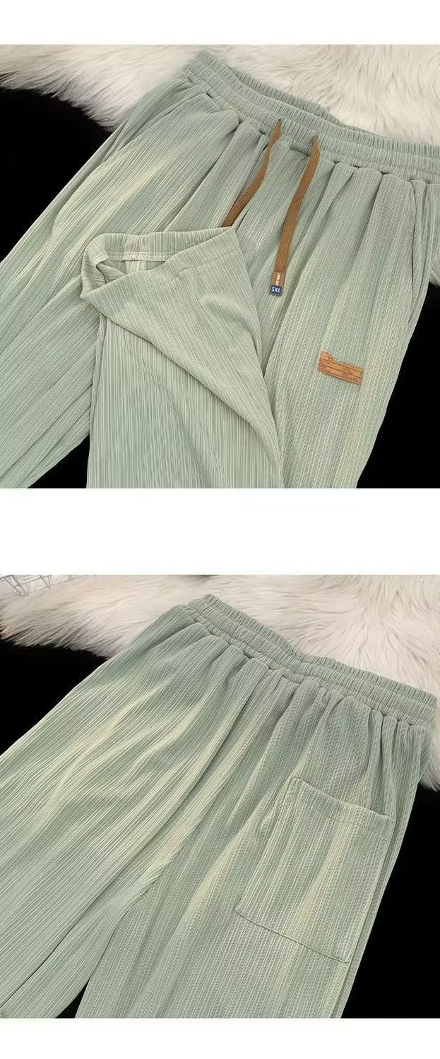 아이스 실크 스트레이트 펜던트 바지 남성 여름 얇은 하이 엔드 와이드 레그 바지 디자인 패션 브랜드 루즈 캐주얼 바지