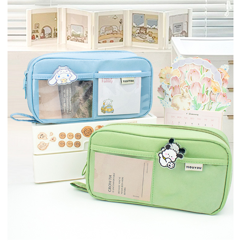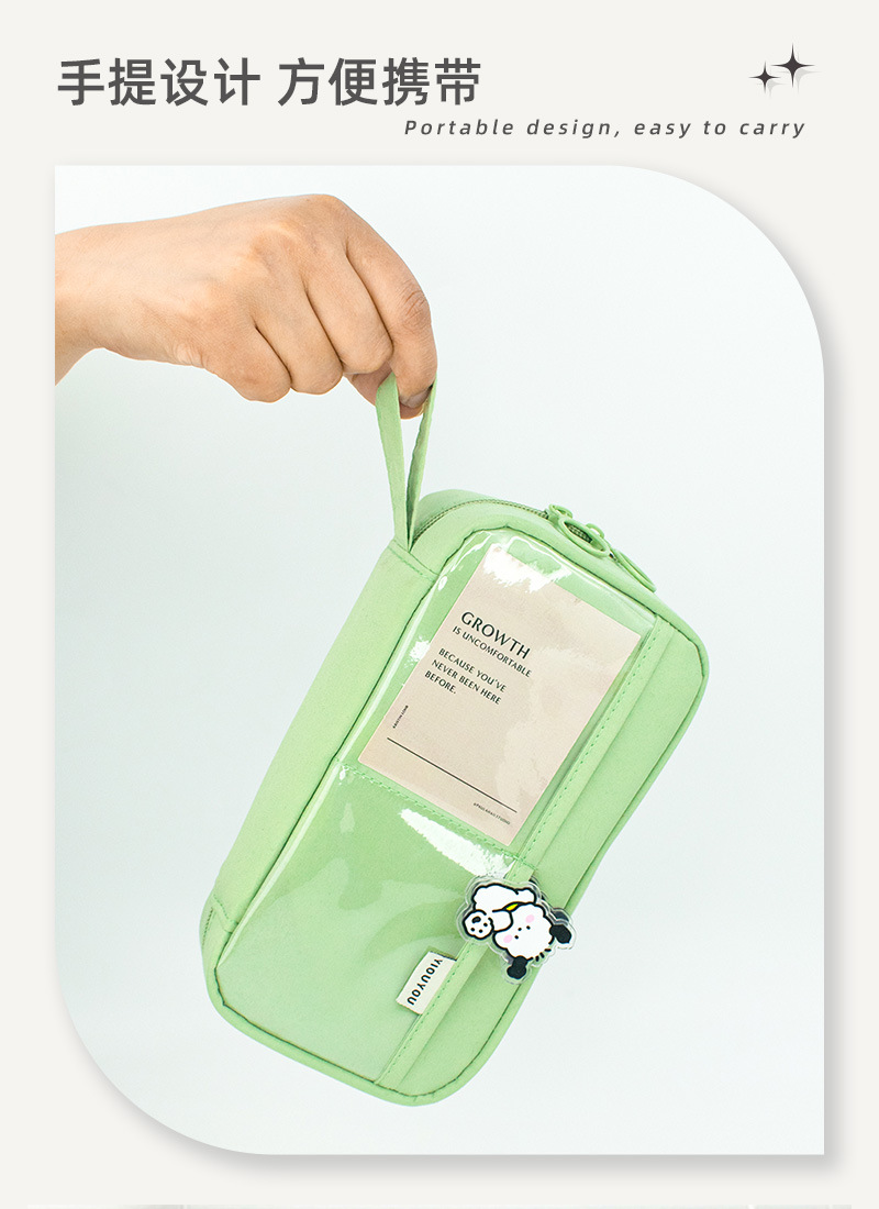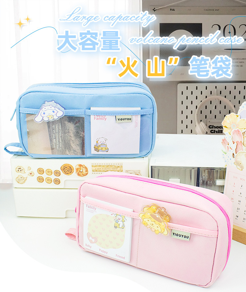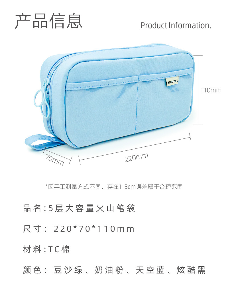 초등 및 중등 학생을위한 새로운 화산 연필 가방 투명 멀티 칸 문구 필통 대용량 투명 연필 가방