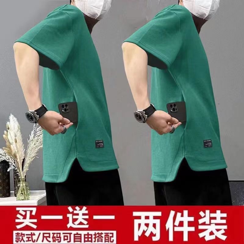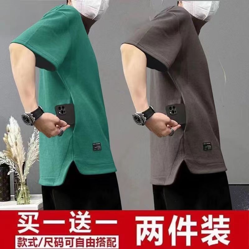여름 남자 반팔 티셔츠 한국 패셔너블 캐주얼 반팔베이스 탑 2024 새로운 청소년 슬림핏 티셔츠
