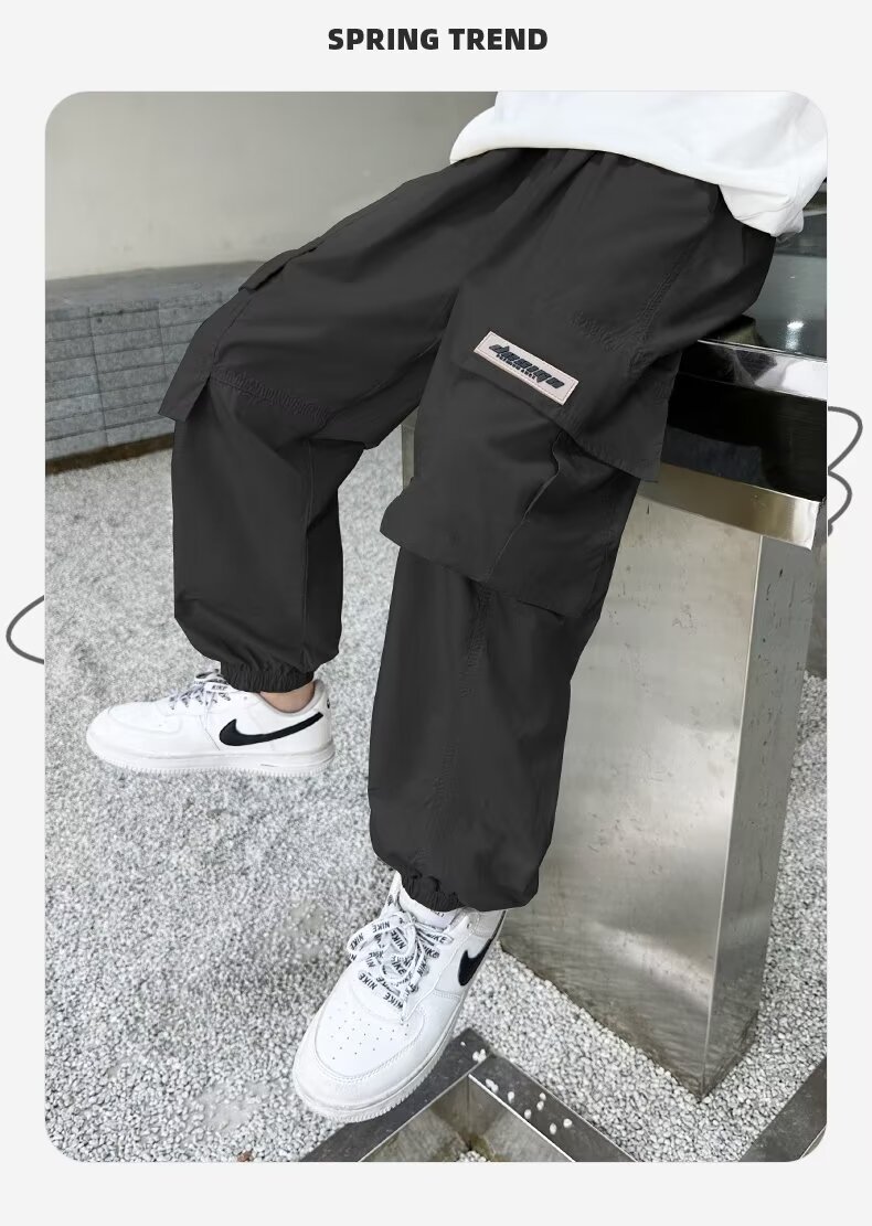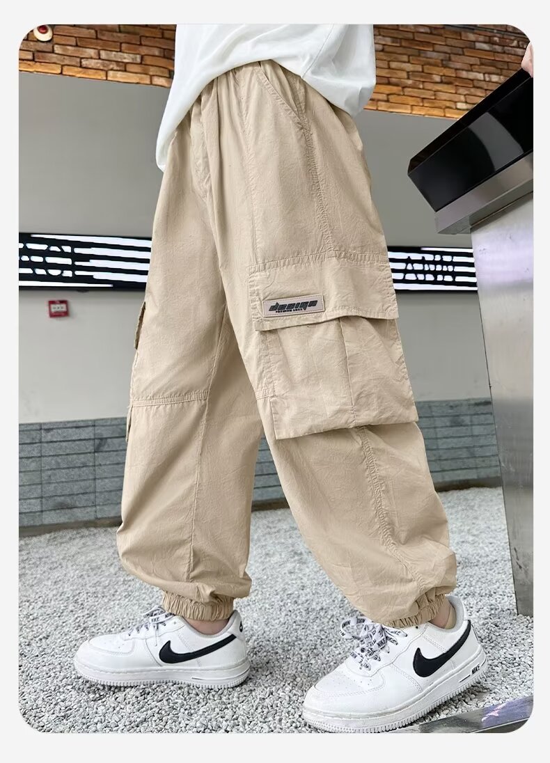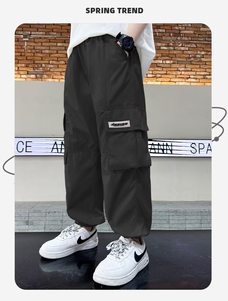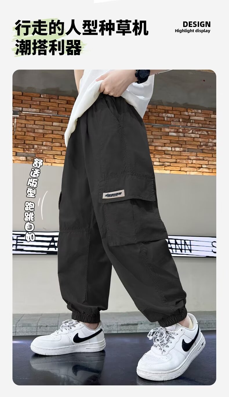남자들의 여름 모기 방지 상자 바지 대형 소년 2024 년 새 소년 얇은 통기성 유행 멋진 스포츠 빠른 건조 바지