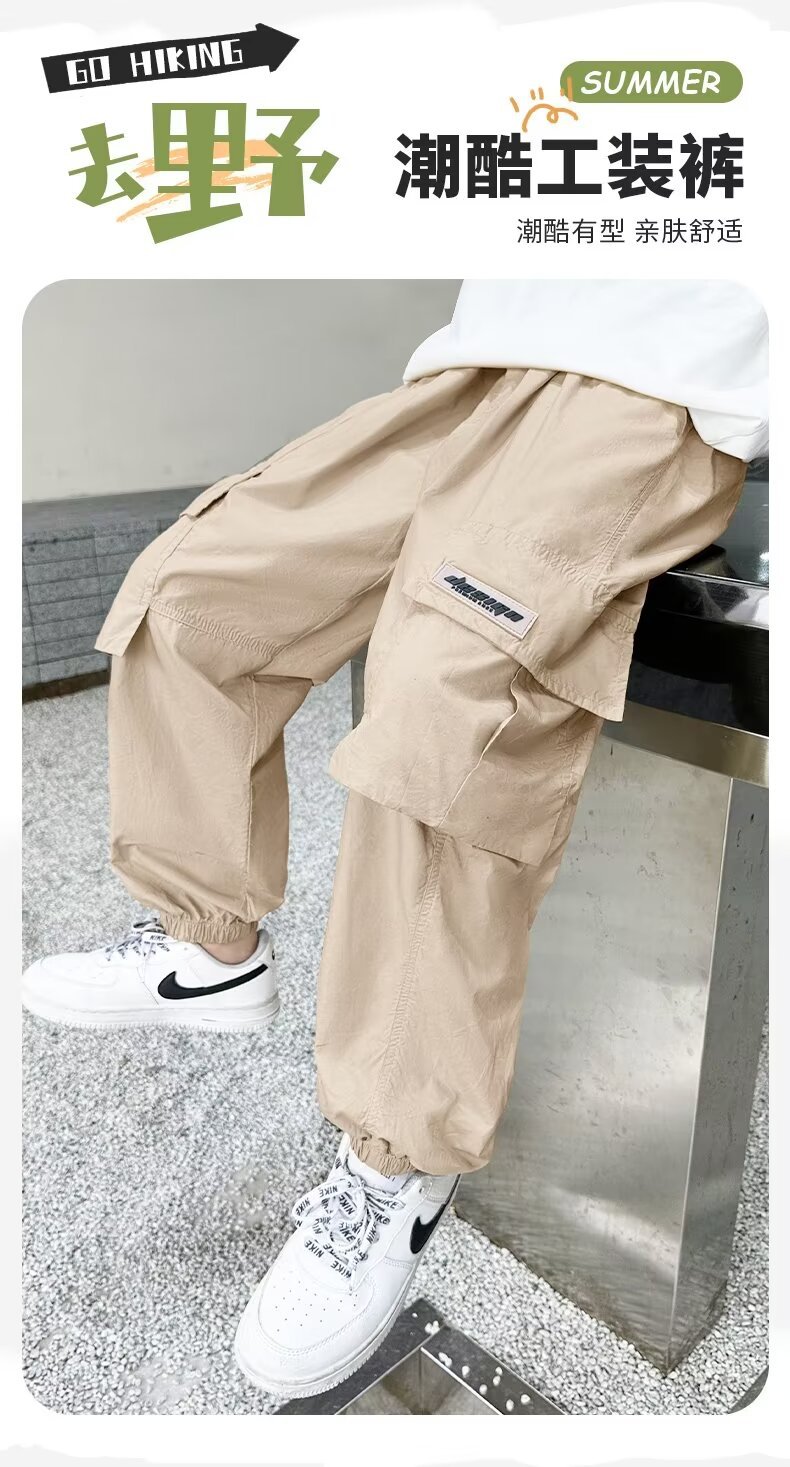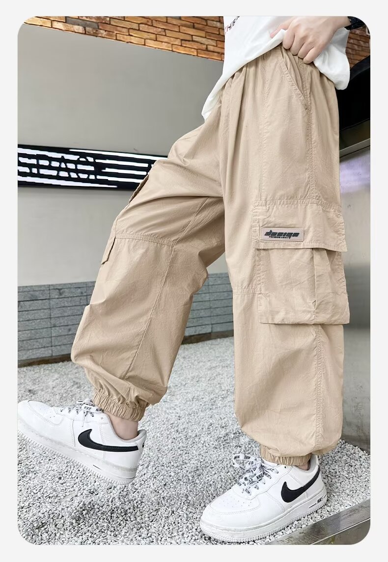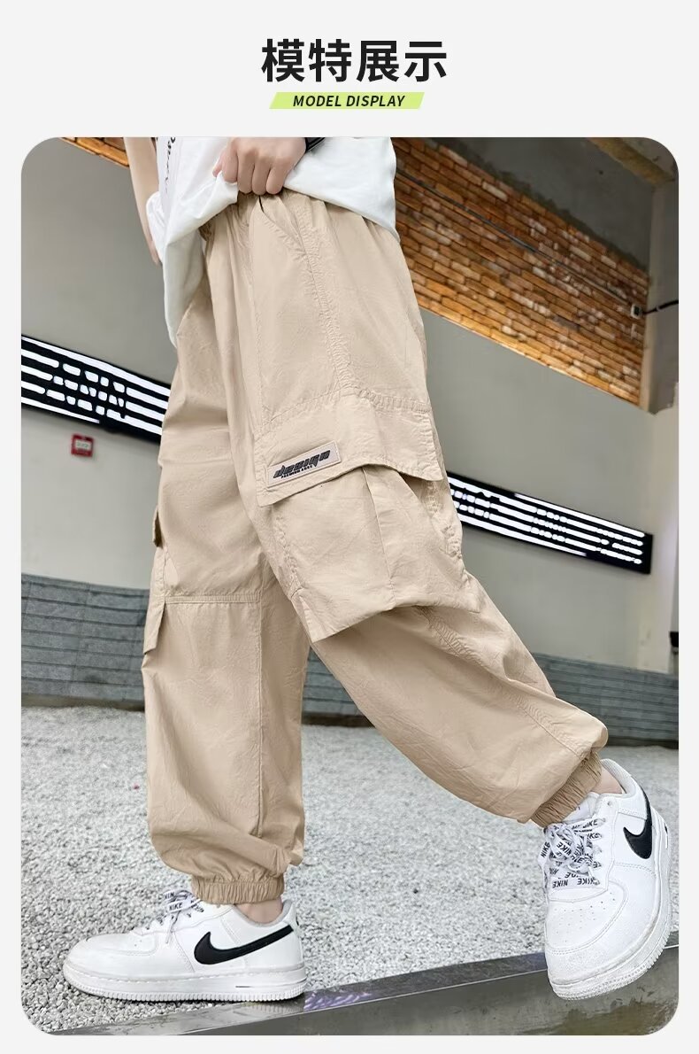 남자들의 여름 모기 방지 상자 바지 대형 소년 2024 년 새 소년 얇은 통기성 유행 멋진 스포츠 빠른 건조 바지스토어 가기