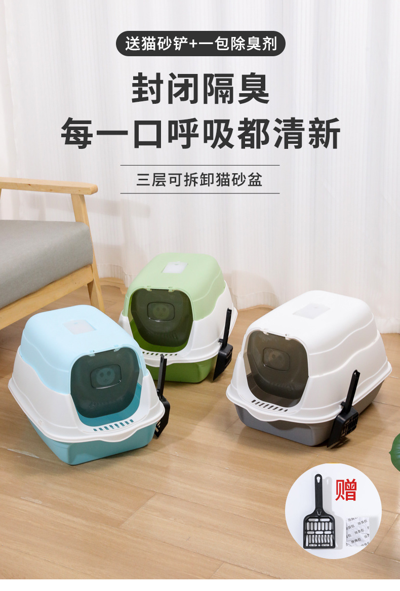 • [3단 고양이 배변 상자] 블루 (52*38*35CM)