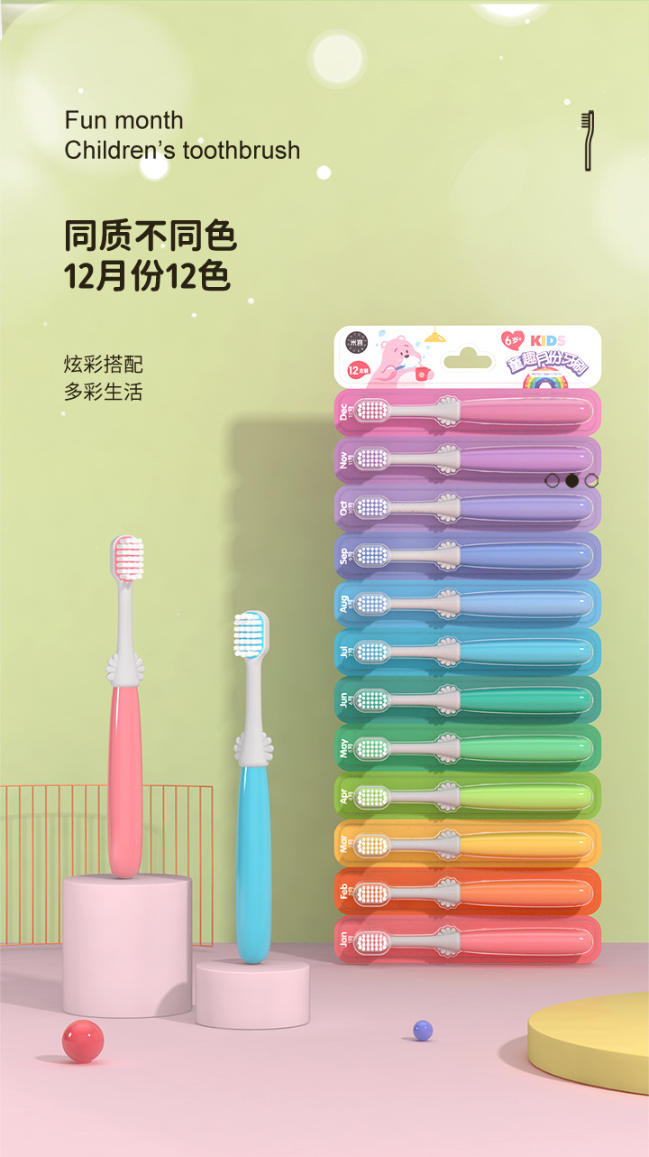 • 12개/보드 어린이용 펀 문 칫솔 6-12세/M146