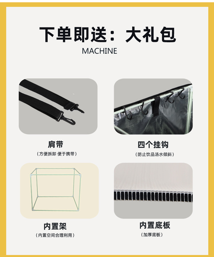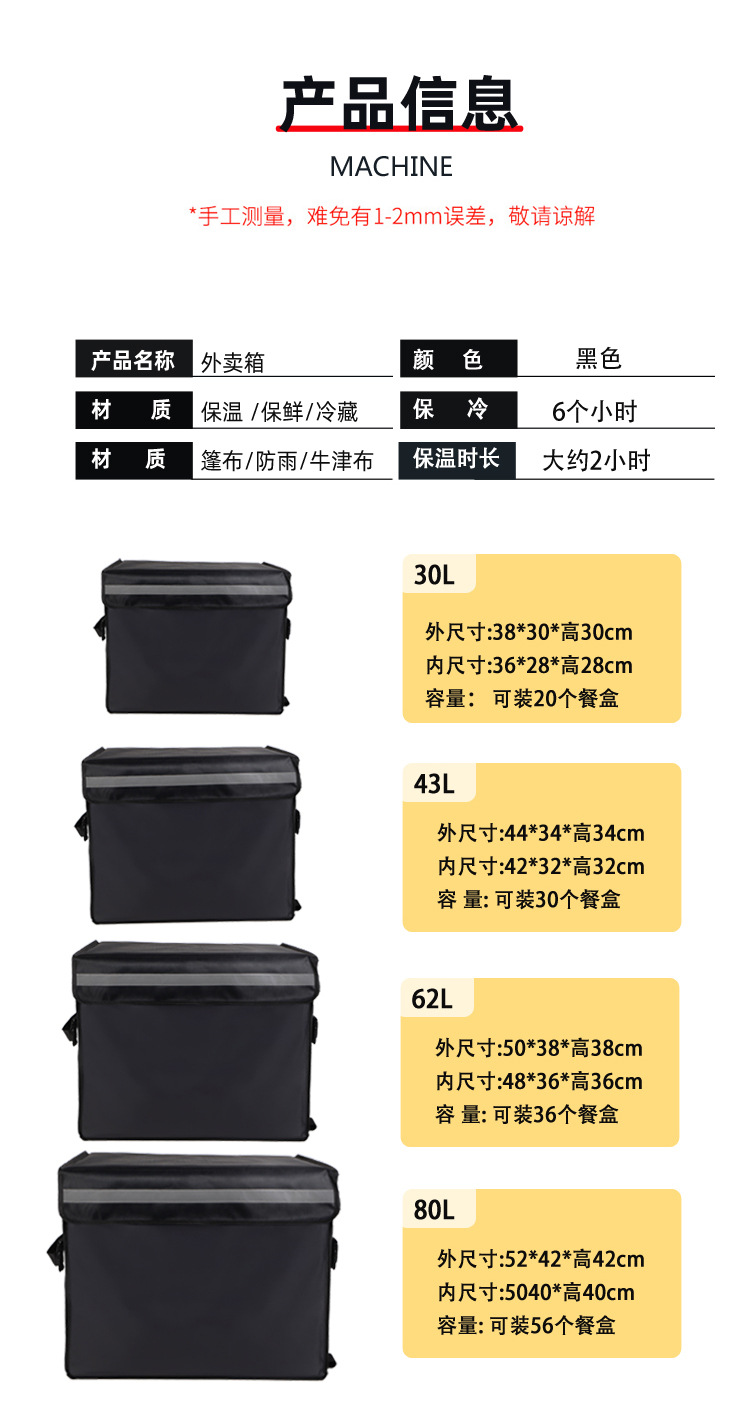 • 검정색 43L 단열 테이크아웃 상자(어깨끈 버클 + 내부 브래킷 + 후크 4개 + 바닥판))
