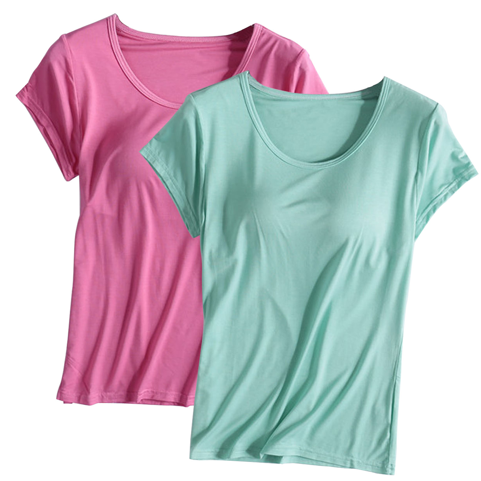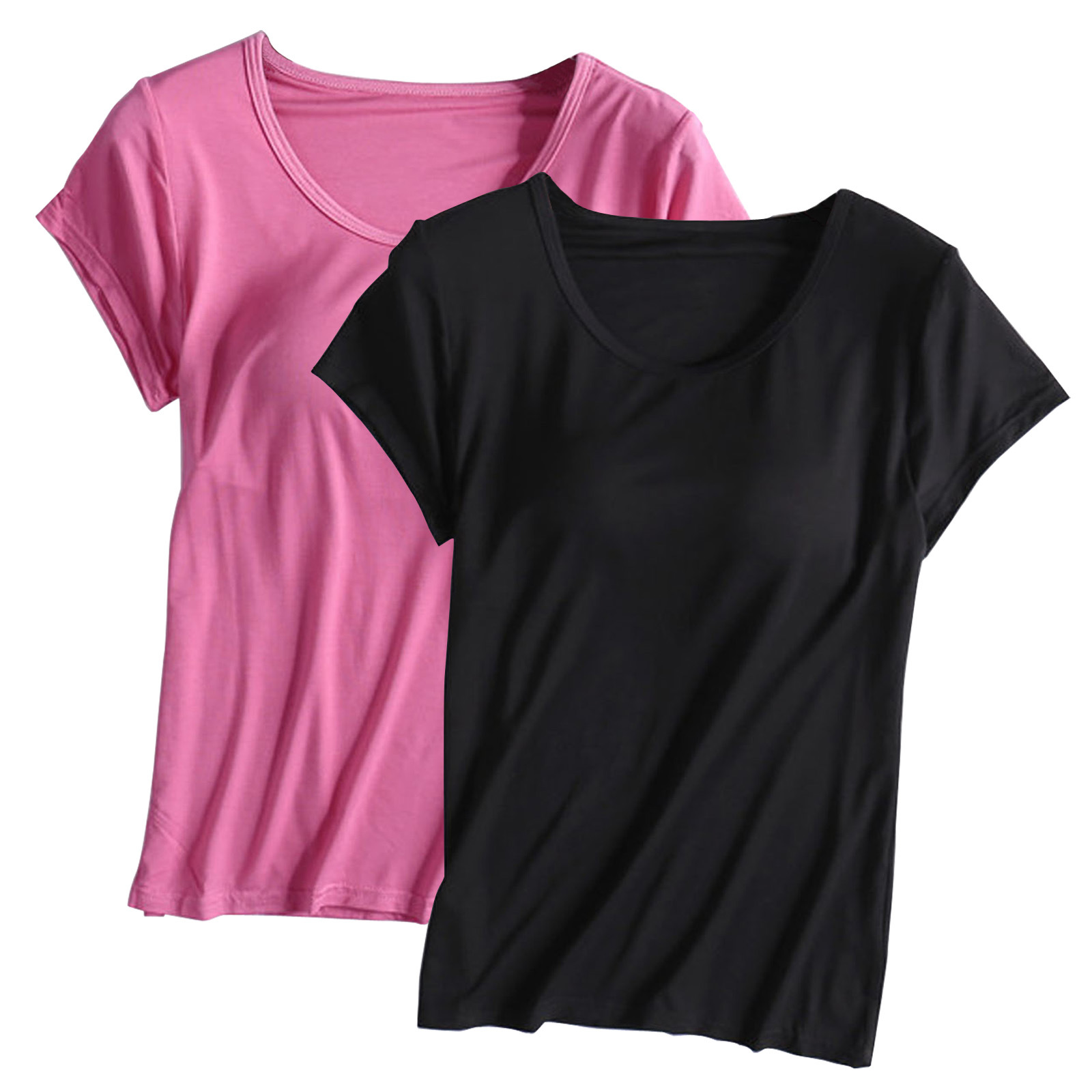투피스 여름 모달 여자 반팔, 가슴 패드 컵 원피스 반소매 티셔츠 홈 의류