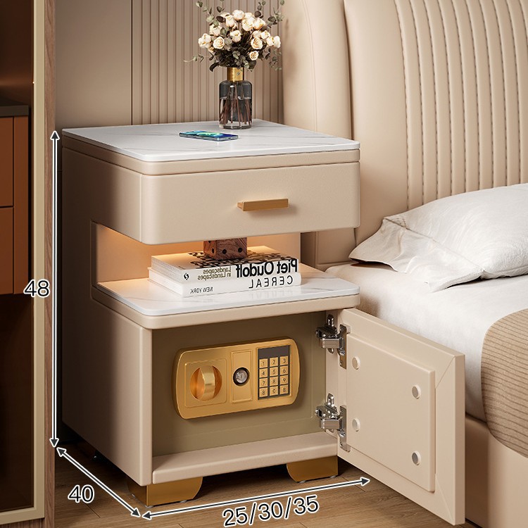智能床头柜保险箱一体轻奢高级感现代简约小型卧室极窄床头置物架
