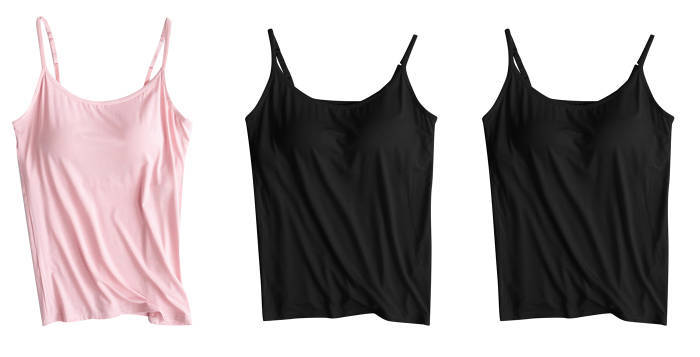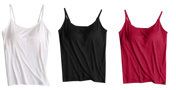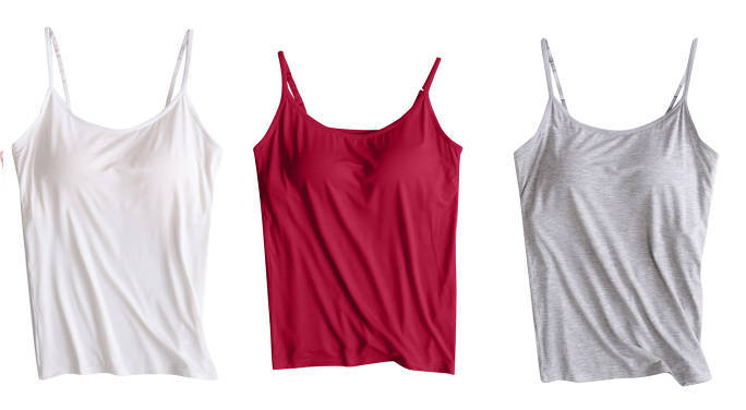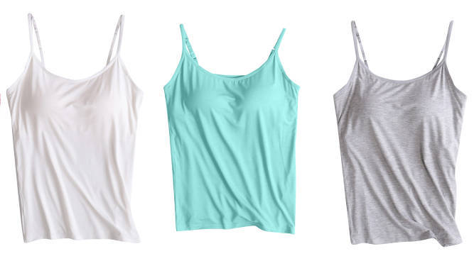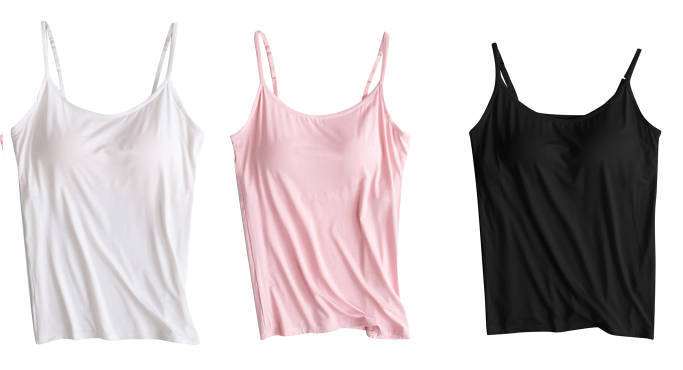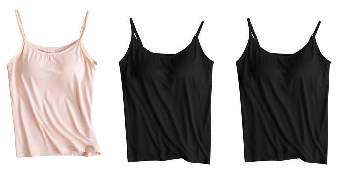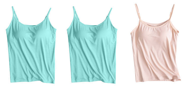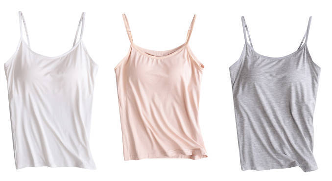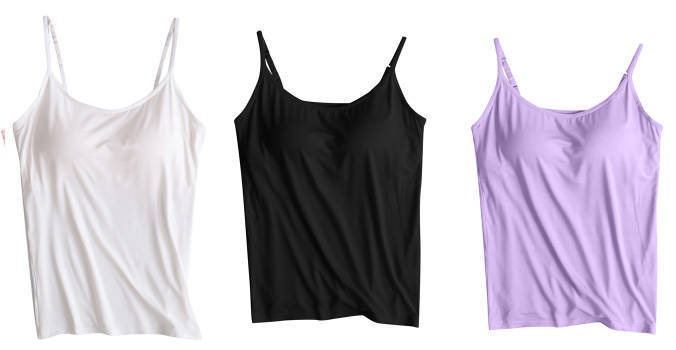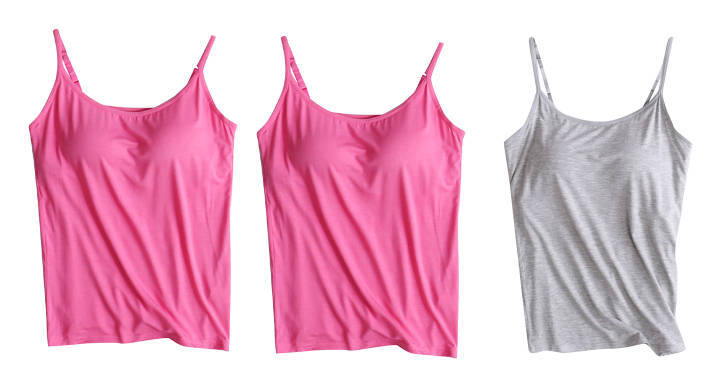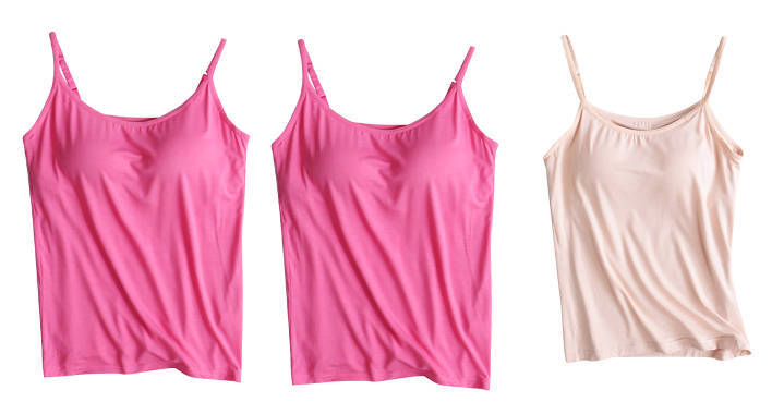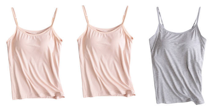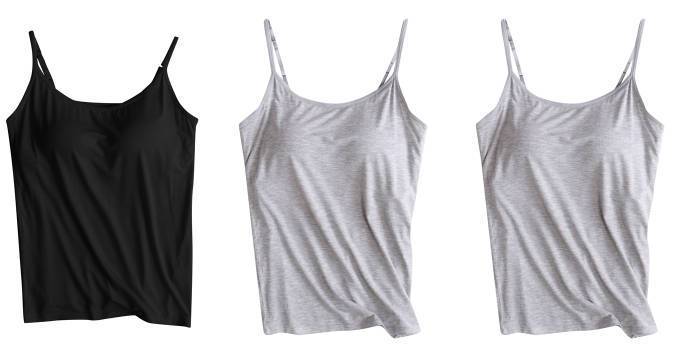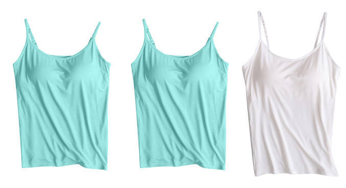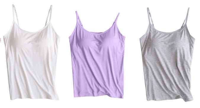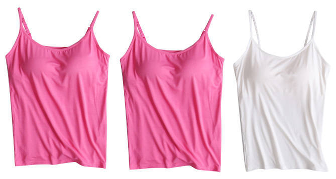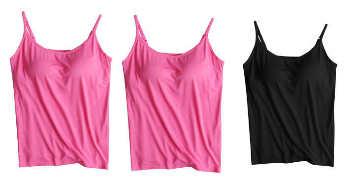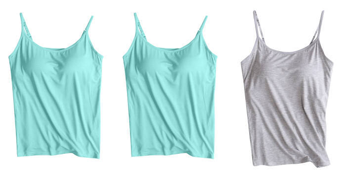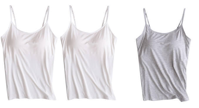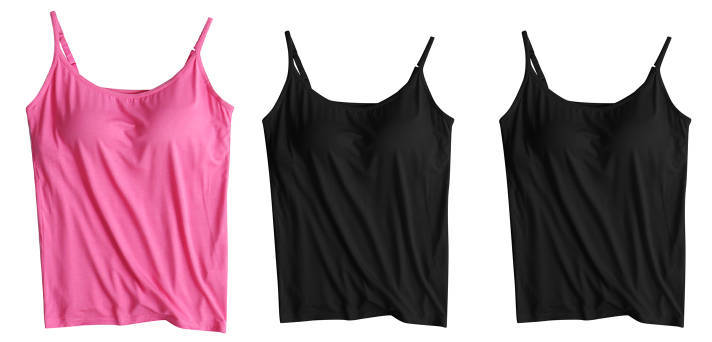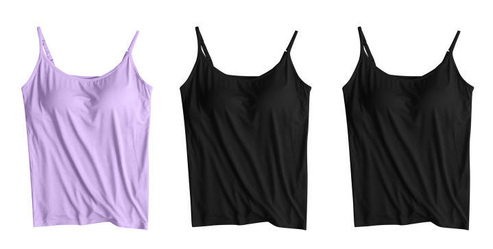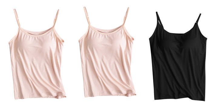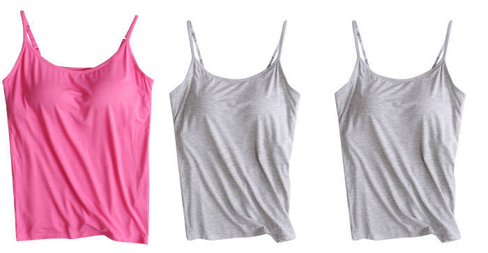 3 피스 여름 모달 여성 가슴 패드 컵 통합 슬링 조끼 티셔츠 홈 옷스토어 가기