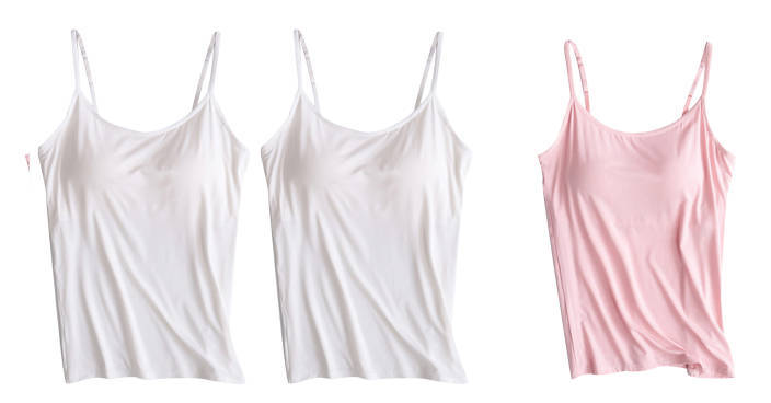 3 피스 여름 모달 여성 가슴 패드 컵 통합 슬링 조끼 티셔츠 홈 옷