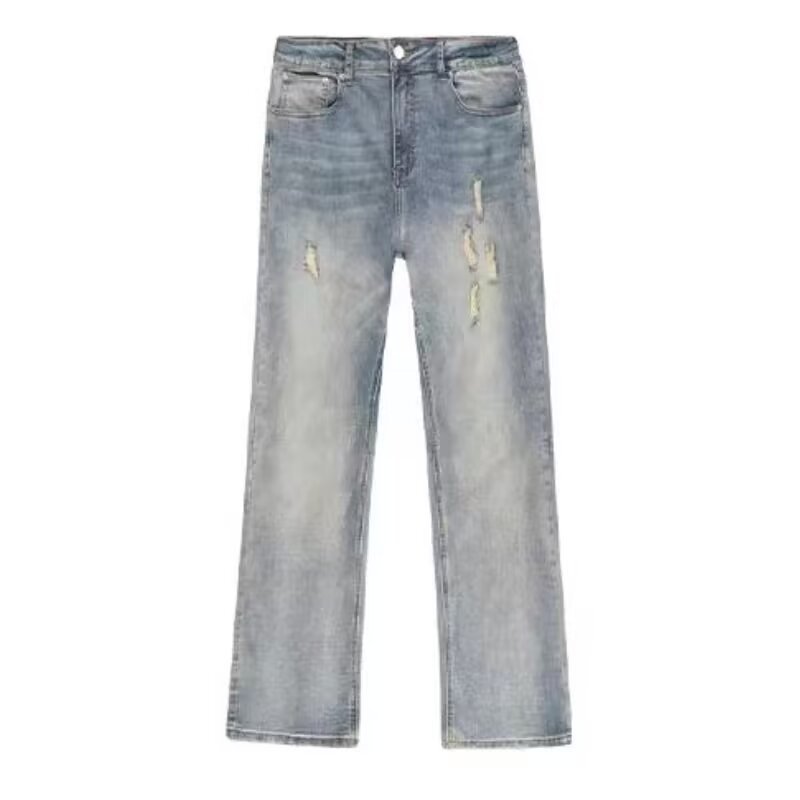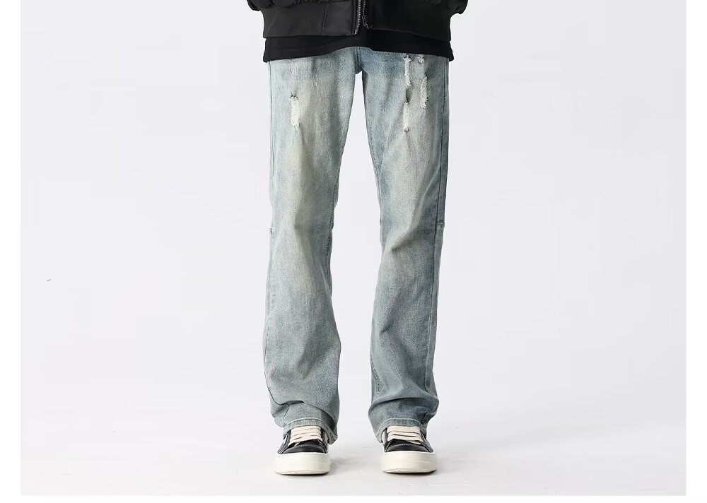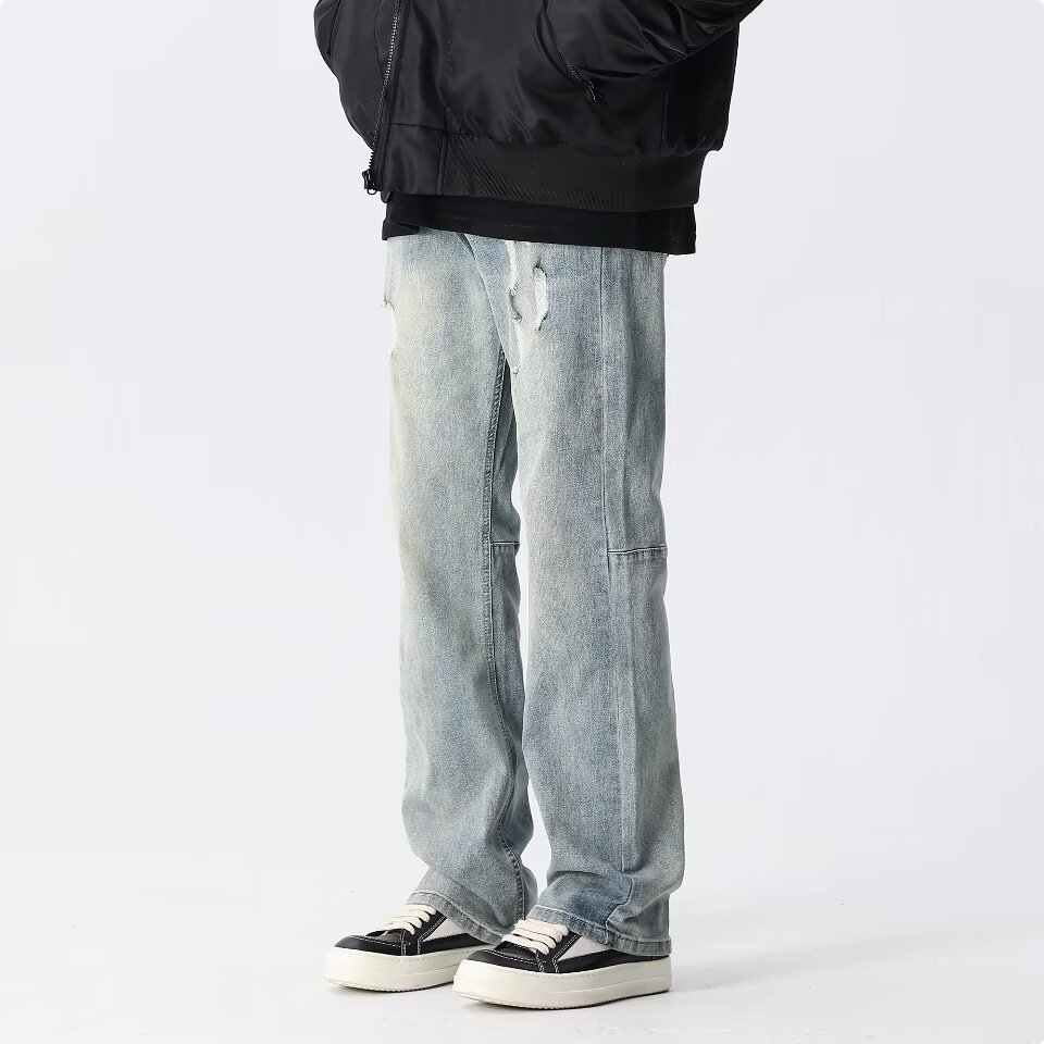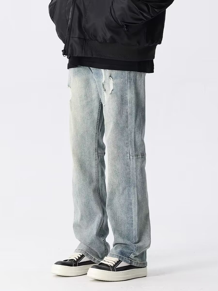 아메리칸 스타일 그라디언트 세탁 청바지 남성 봄과 가을 스트레이트 캐주얼 바지 느슨한 넓은 다리 바지 남자 2024