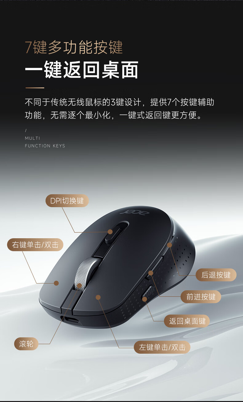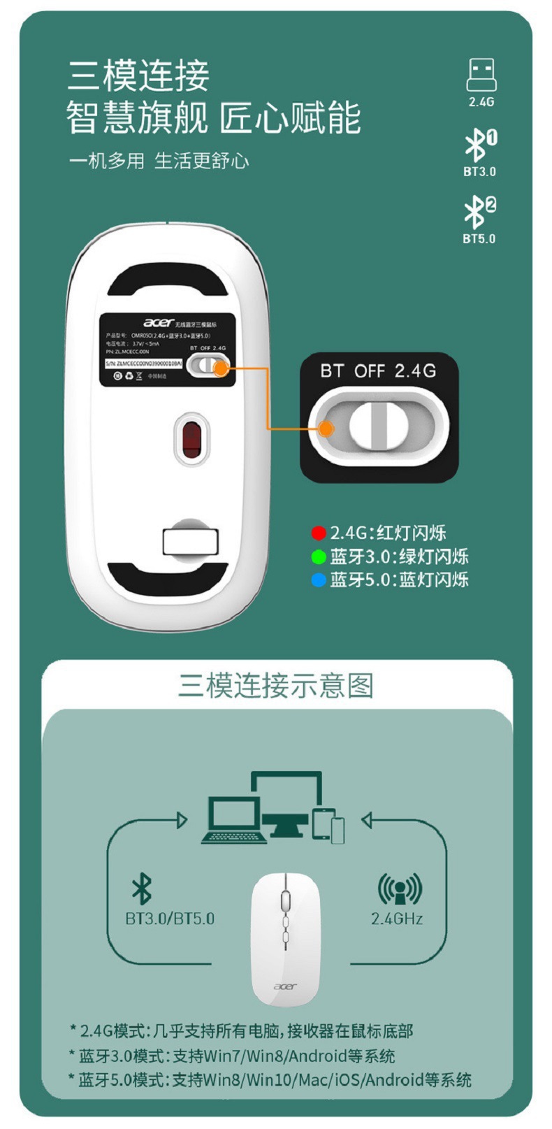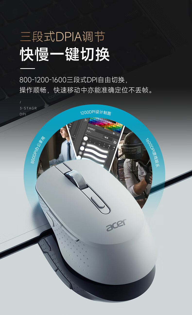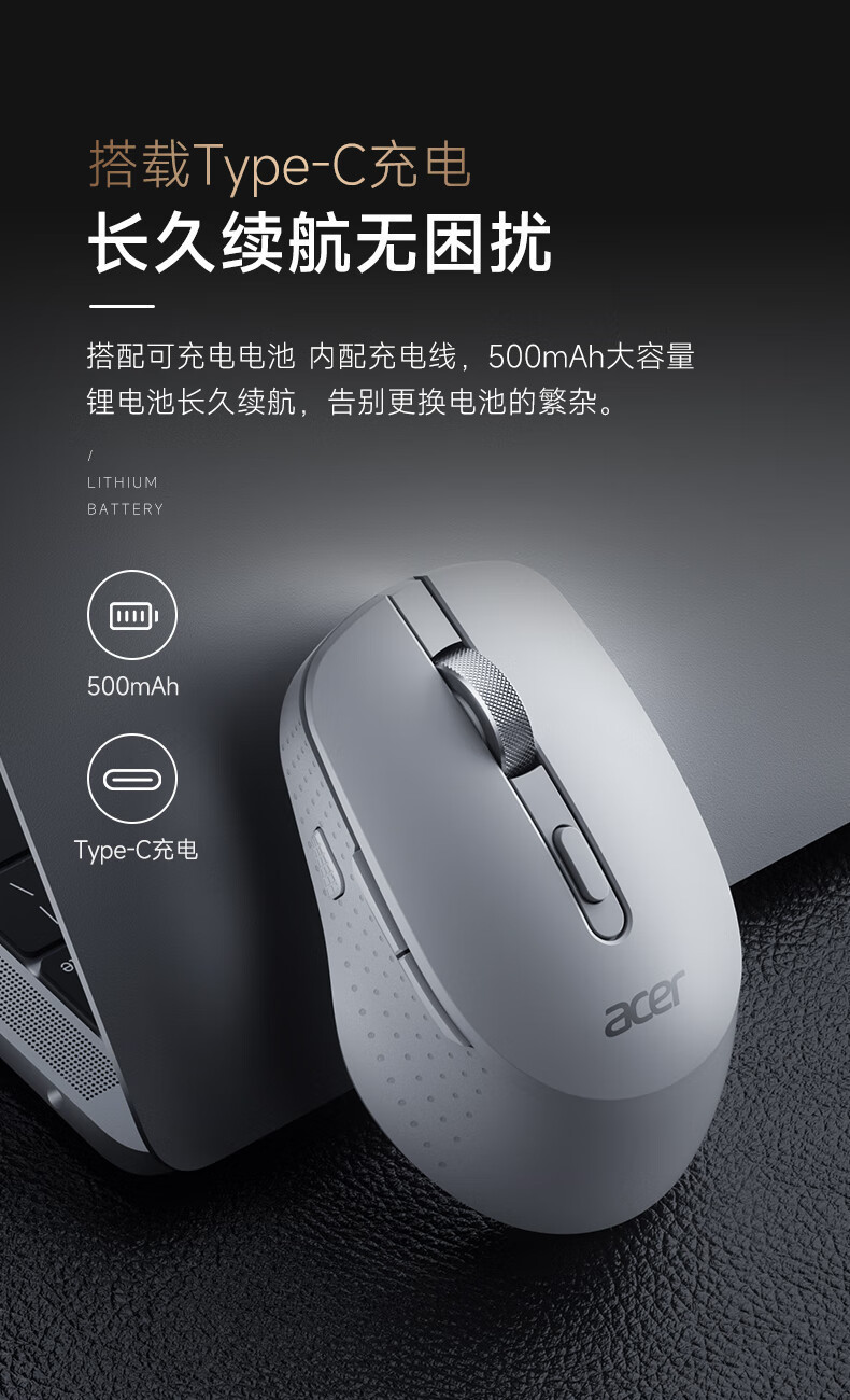 도매용 Acer 무선 블루투스+2.4G 듀얼 모드 마우스 충전식 무소음 노트북 올인원 태블릿 무소음스토어 가기