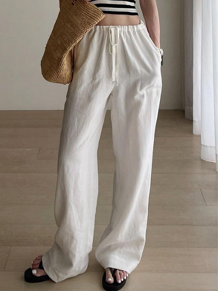 하이 퀄리티 화이트 린넨 바지 여성의 높은 허리 포장 캐주얼 바지 면 린넨 바지스토어 가기
