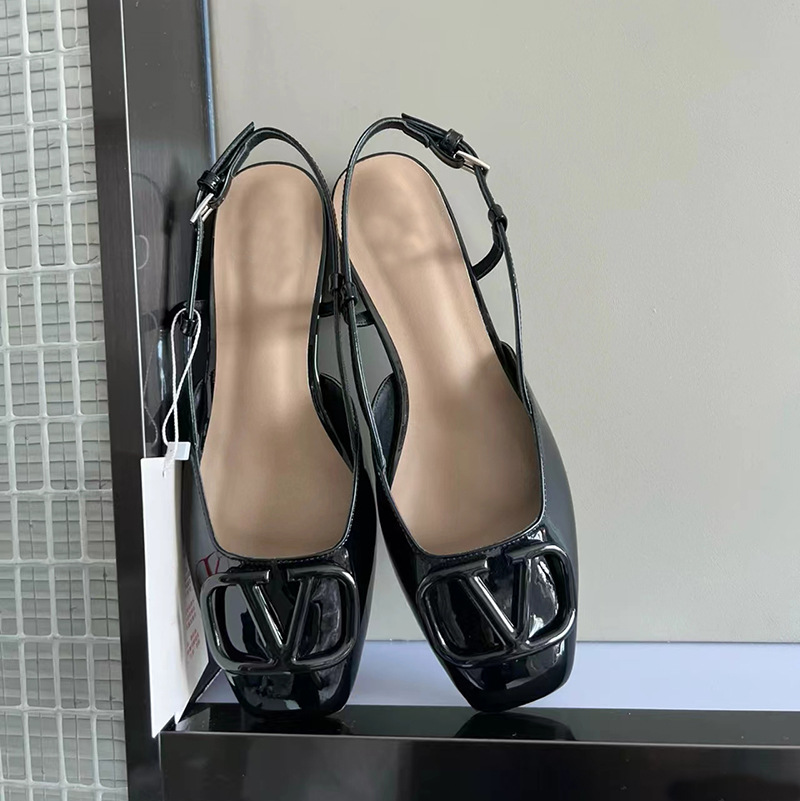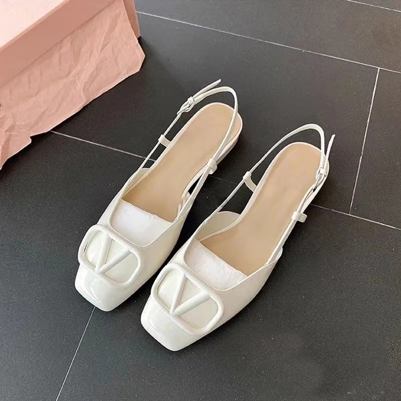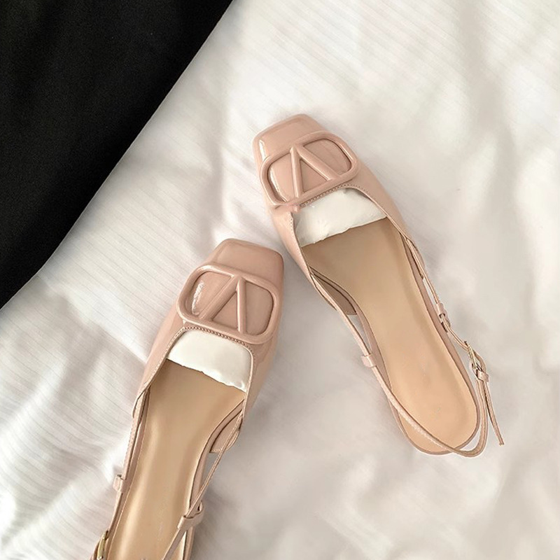 2024 Summer Square Head V Buckle Baotou 빈 핑크 플랫 샌들 여성 통근 신발 Su Yinyin 같은 스타일스토어 가기