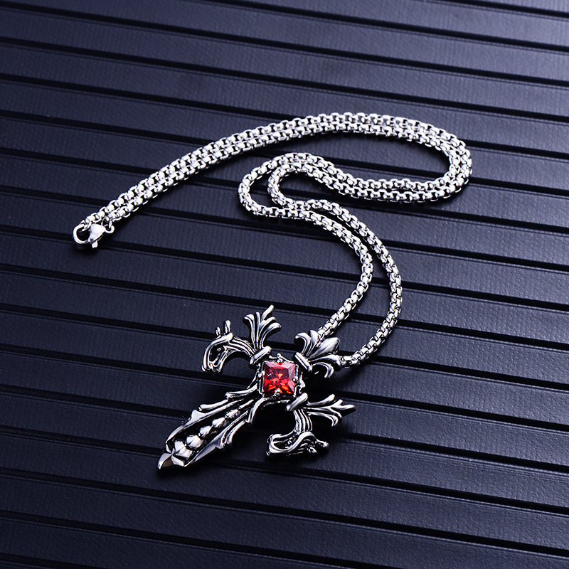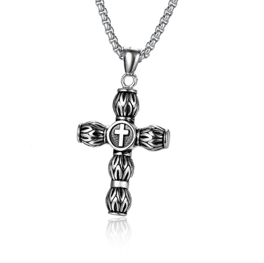 티타늄 스틸 빈티지 더블 드래곤 전쟁 크로스 목걸이 펜던트 목걸이 패션 새로운 다이아몬드 스테인레스 스틸 보석 도매스토어 가기
