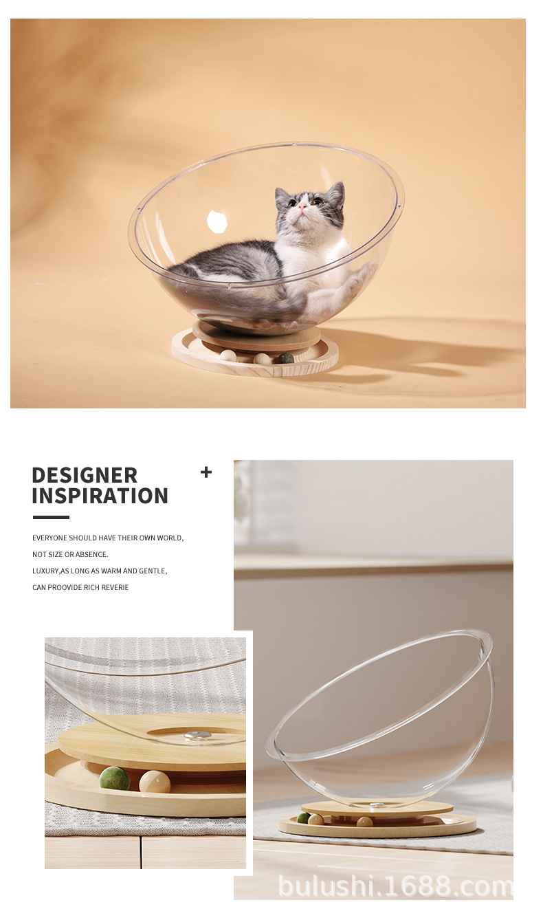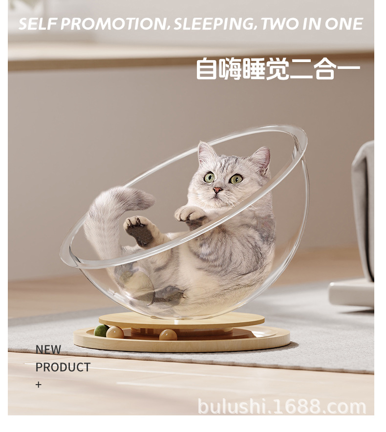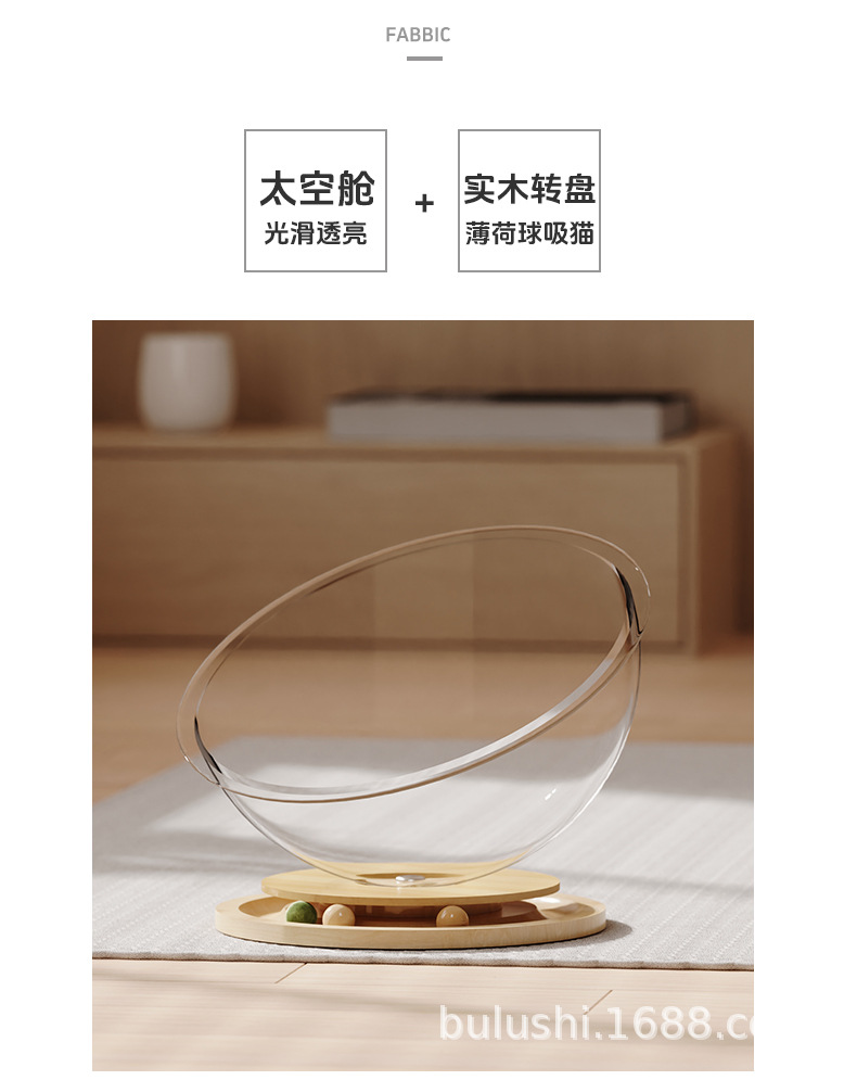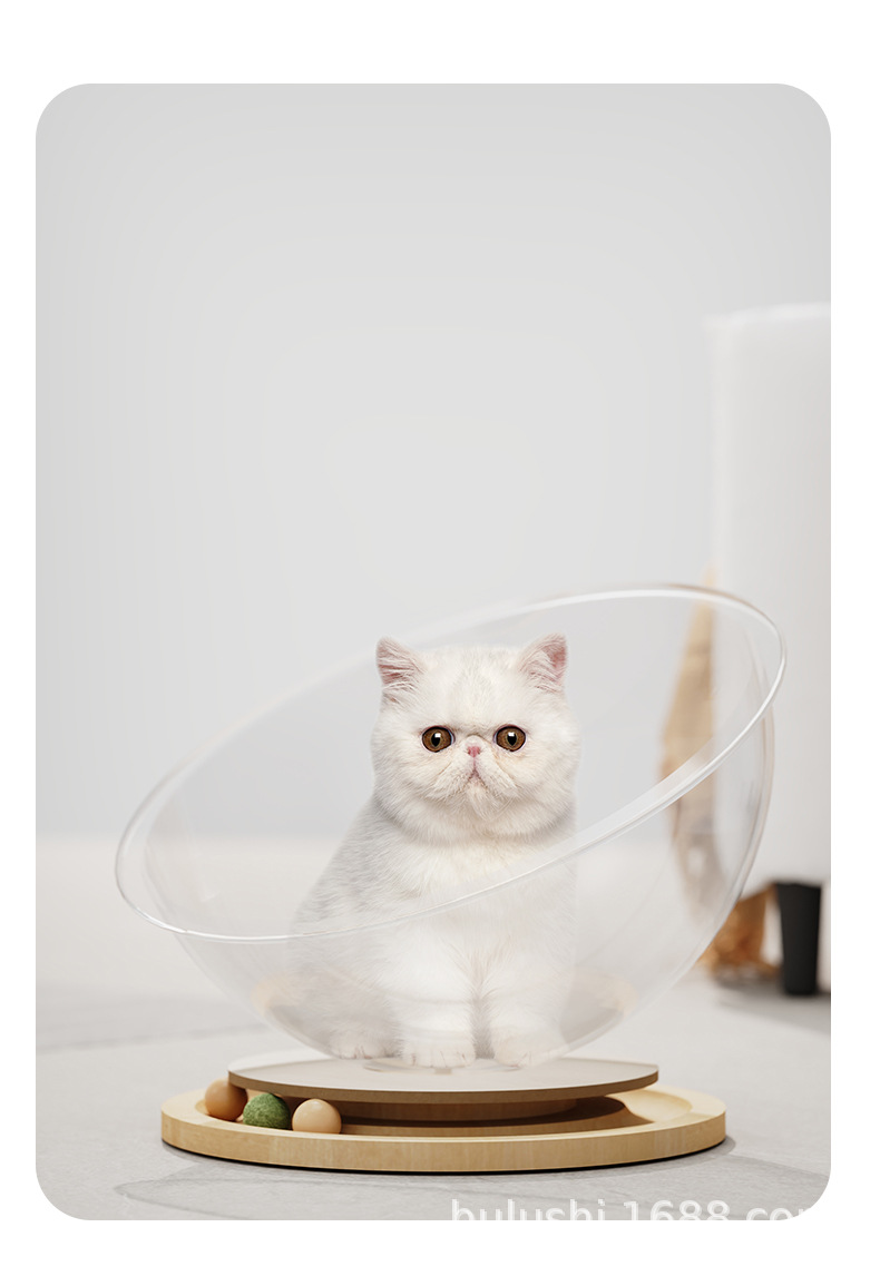 공장 직접 공급 공간 캡슐 아크릴 고양이 둥지 단단한 나무 턴테이블 장난감 민트 고양이 재생 수면 통합 애완 동물 용품스토어 가기