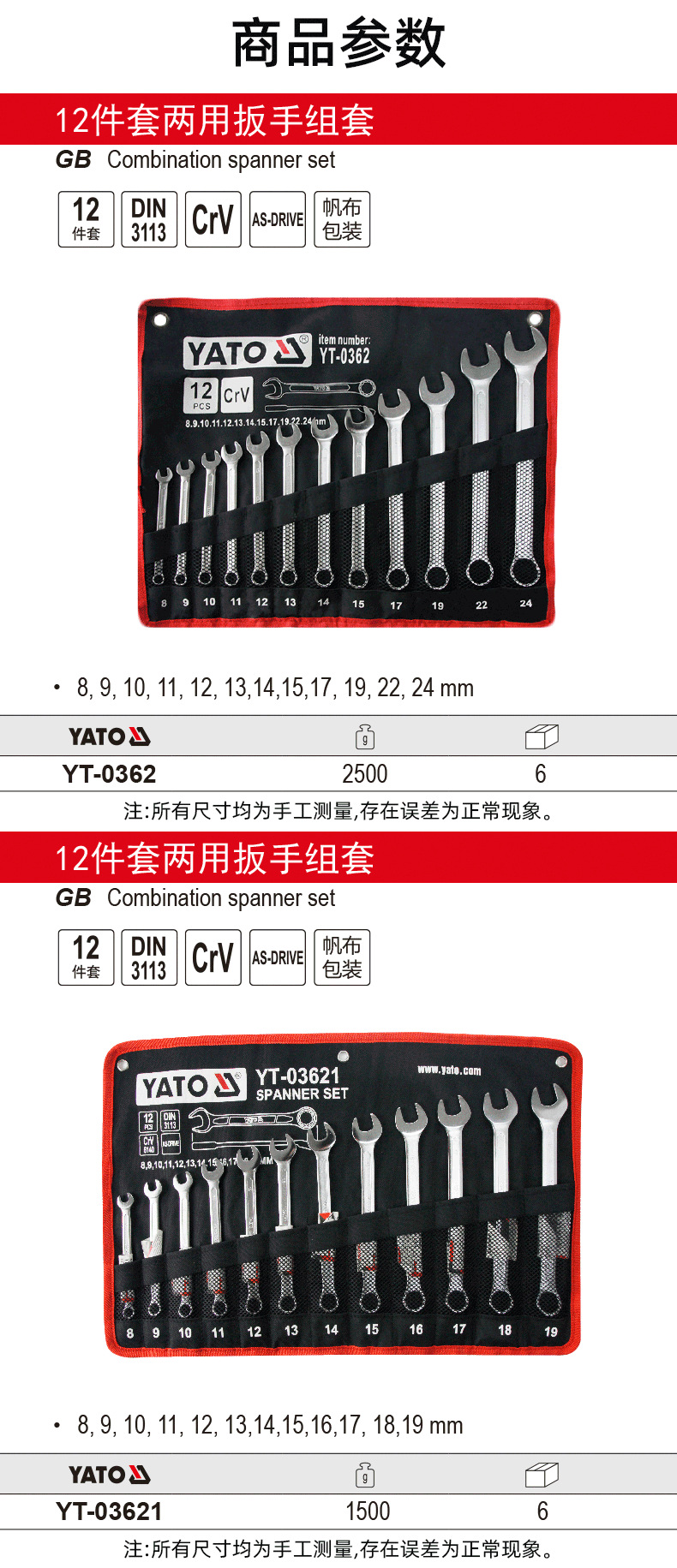 Elto YATO Torx 개방형 이중 목적 렌치 도구 세트 12-13-17-23-25-26 조각 세트