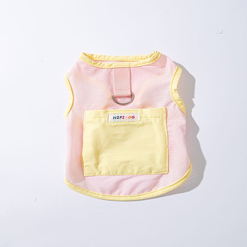 여름 얇은 마카롱 나비 메쉬 태양 보호 시원한 견인 조끼 작은 개 비숑 애완견 옷