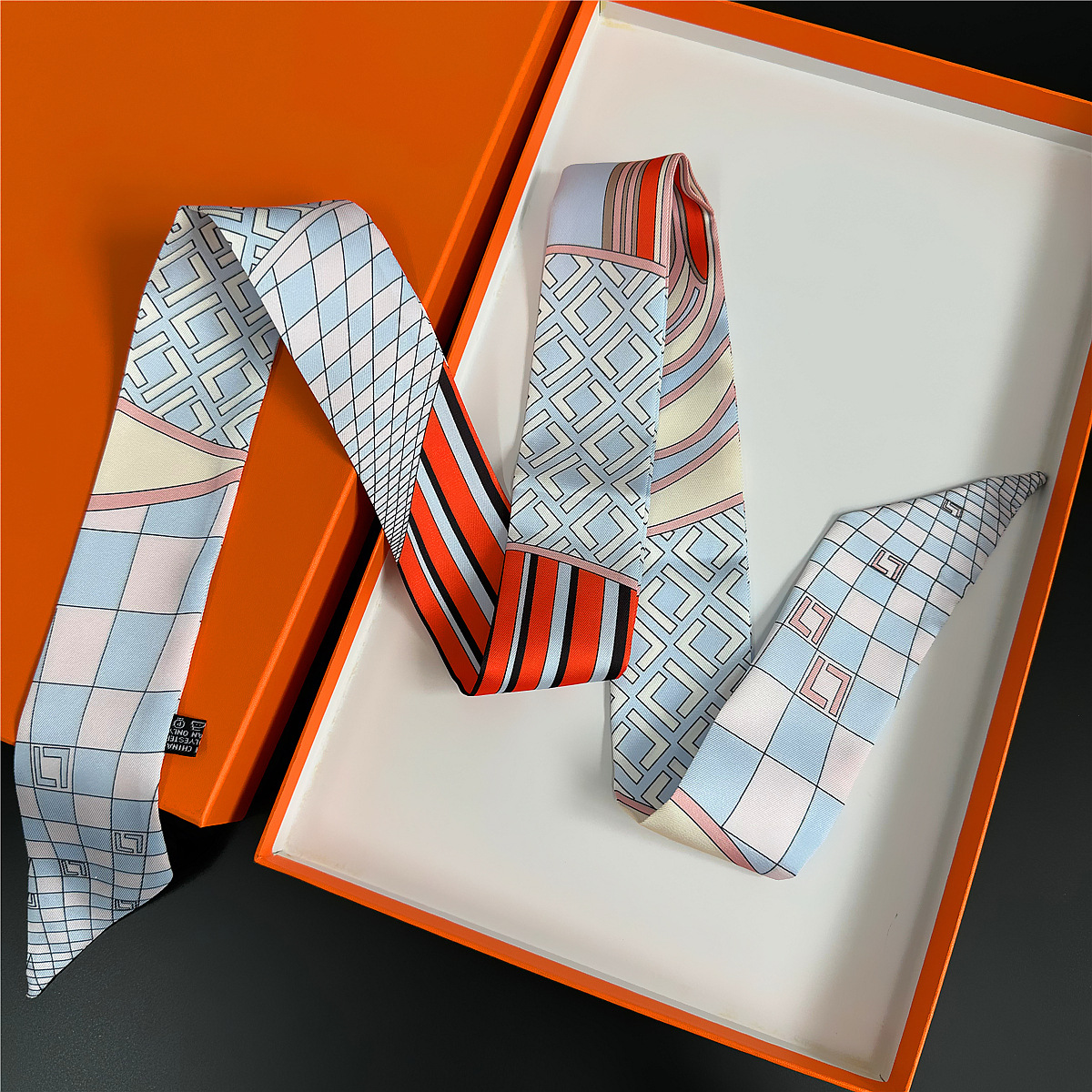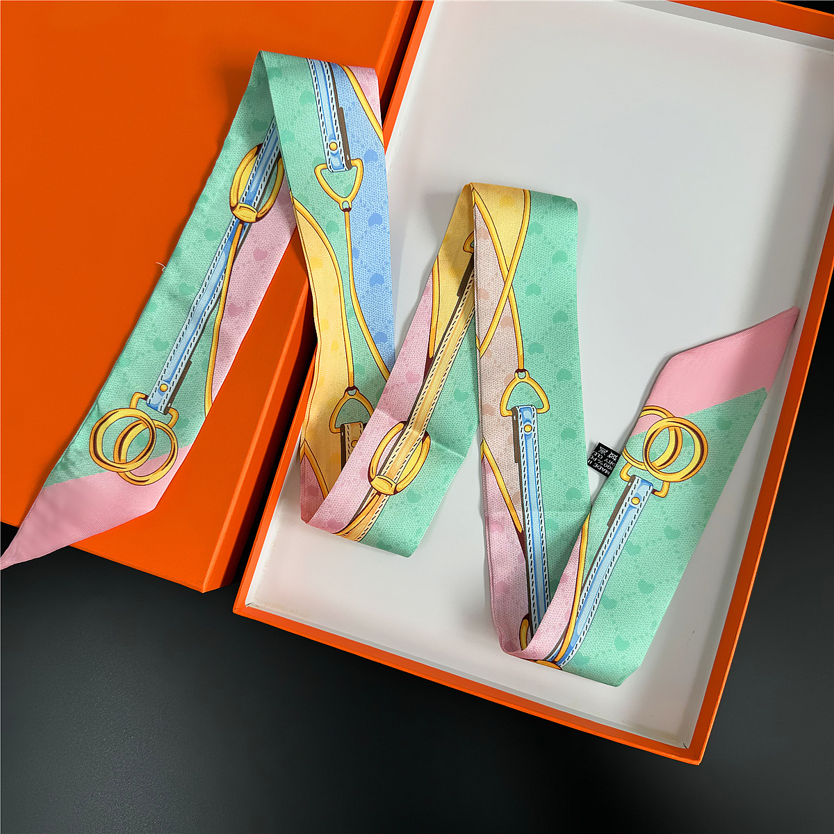 좁고 긴 작은 실크 스카프 여성용 넥타이 웨이브 헤어 밴드 넥타이 헤어 얇은 긴 리본 리본 벨트 장식 타이