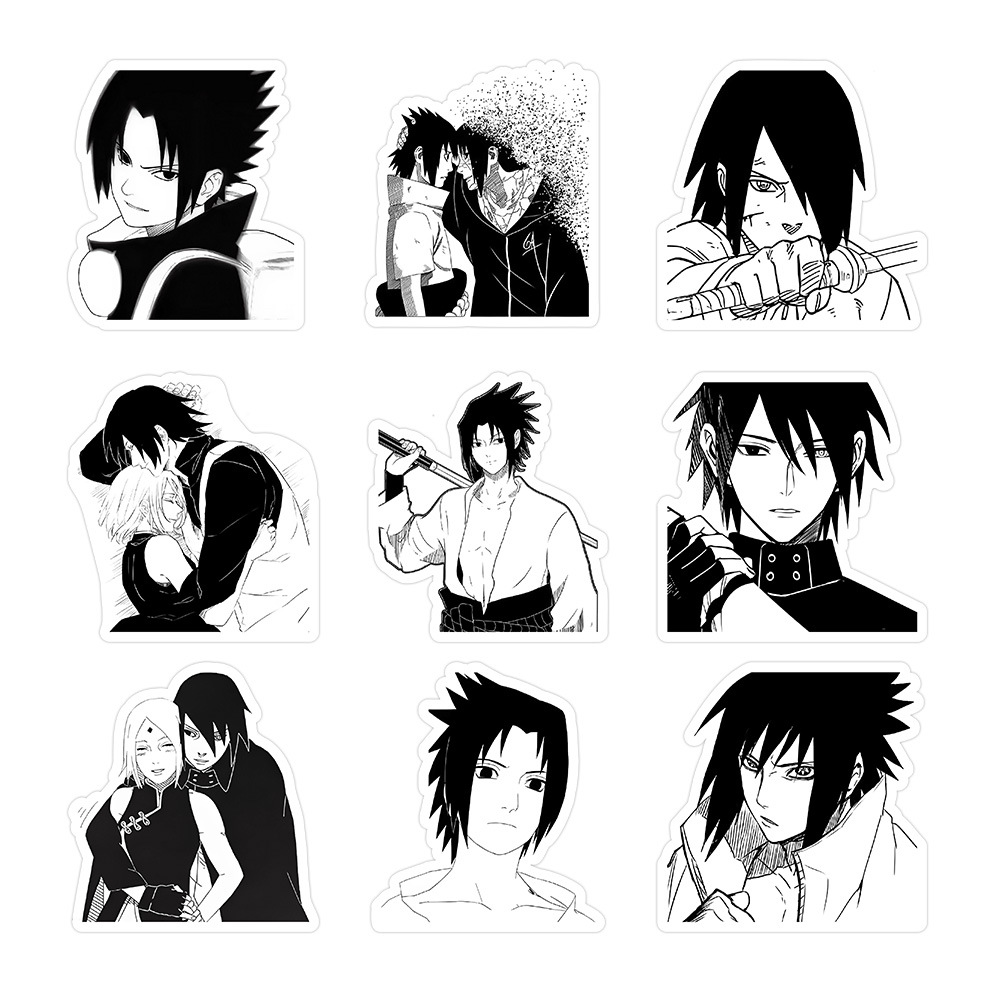 60 흑백 사스케 만화 스티커 스타일 창조적 인 장식 수하물 노트북 문구 손 계정 소재 스티커스토어 가기