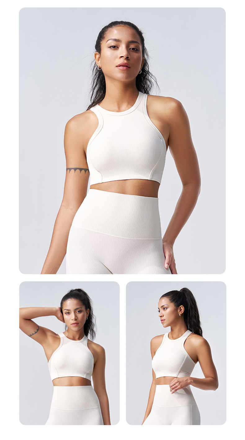 일체형 스포츠 조끼 여성용 고정형 가슴 패드 피트니스 브라 타이트한 백리스 속옷 나선형 슬리밍 요가복