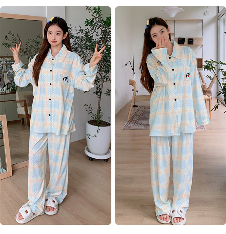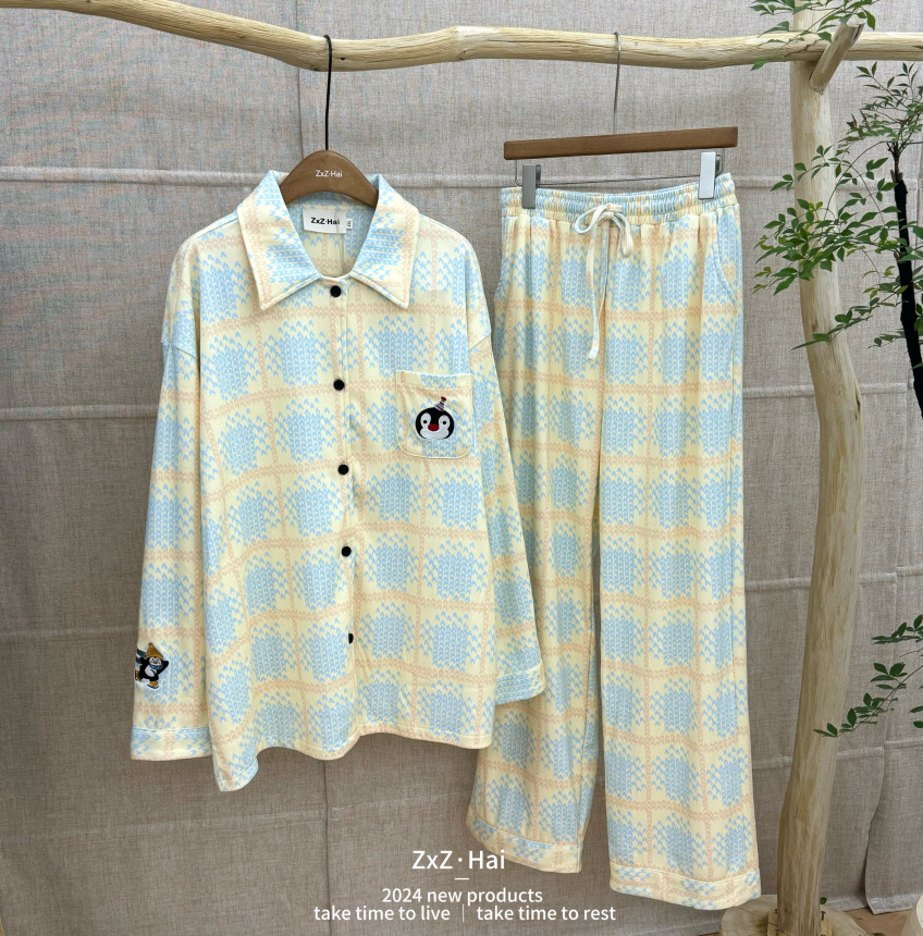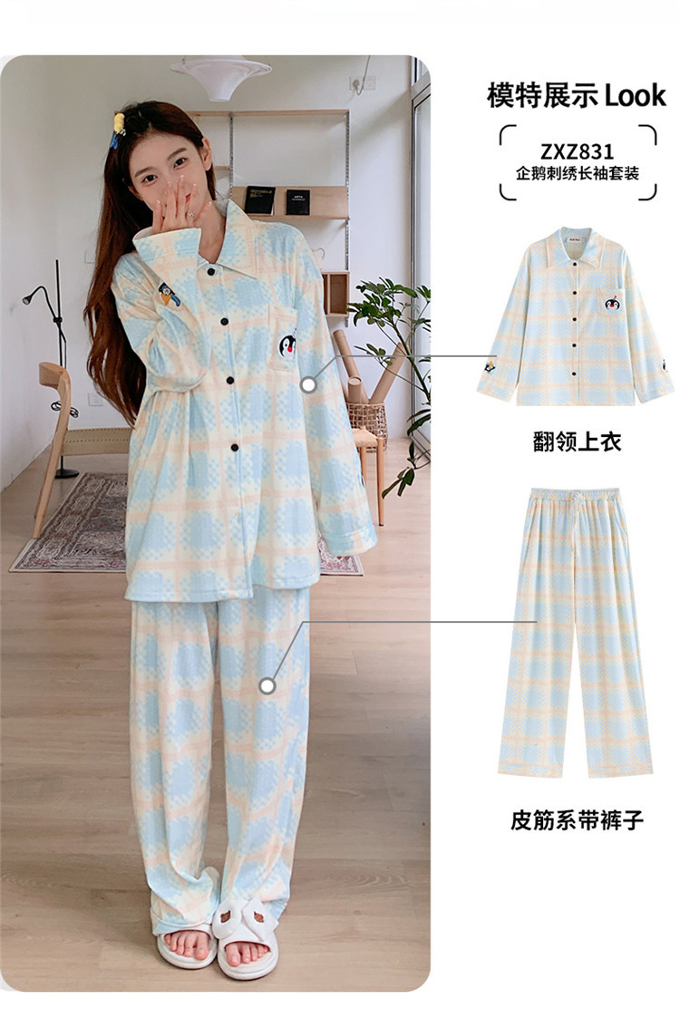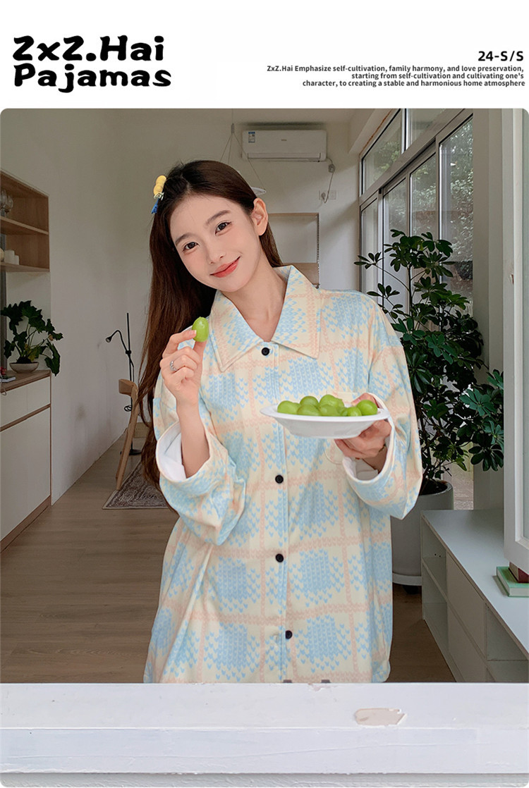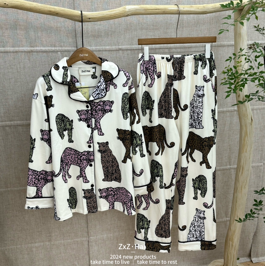 2024 봄과 가을 새로운 여성 벨벳 파자마 여성용 긴팔 Ins 캐주얼 옷깃 하이 엔드 센스 홈웨어 커버스토어 가기