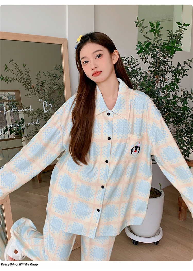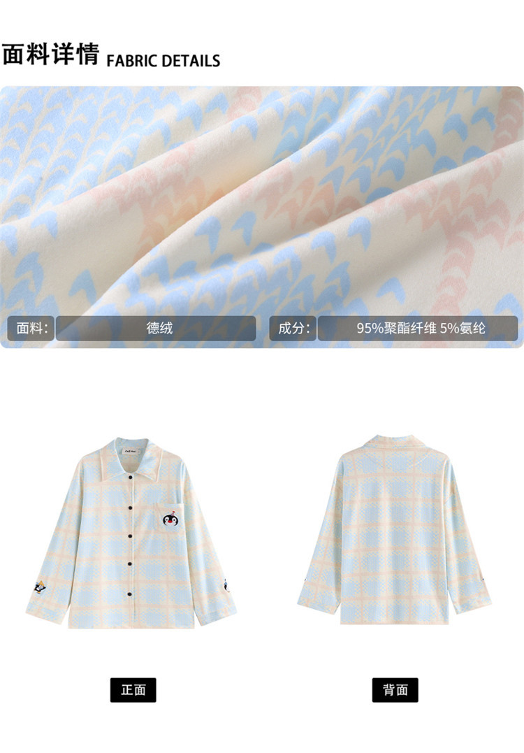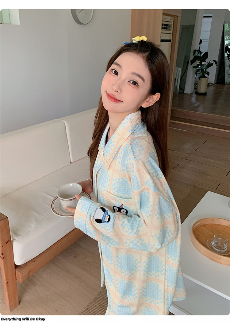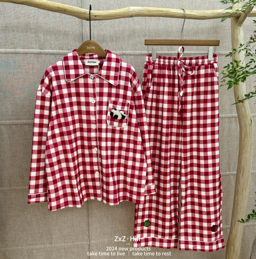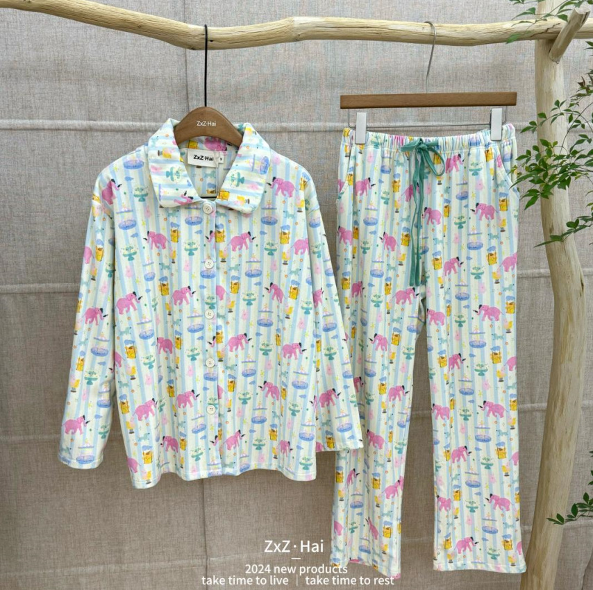 2024 봄과 가을 새로운 여성 벨벳 파자마 여성용 긴팔 Ins 캐주얼 옷깃 하이 엔드 센스 홈웨어 커버스토어 가기