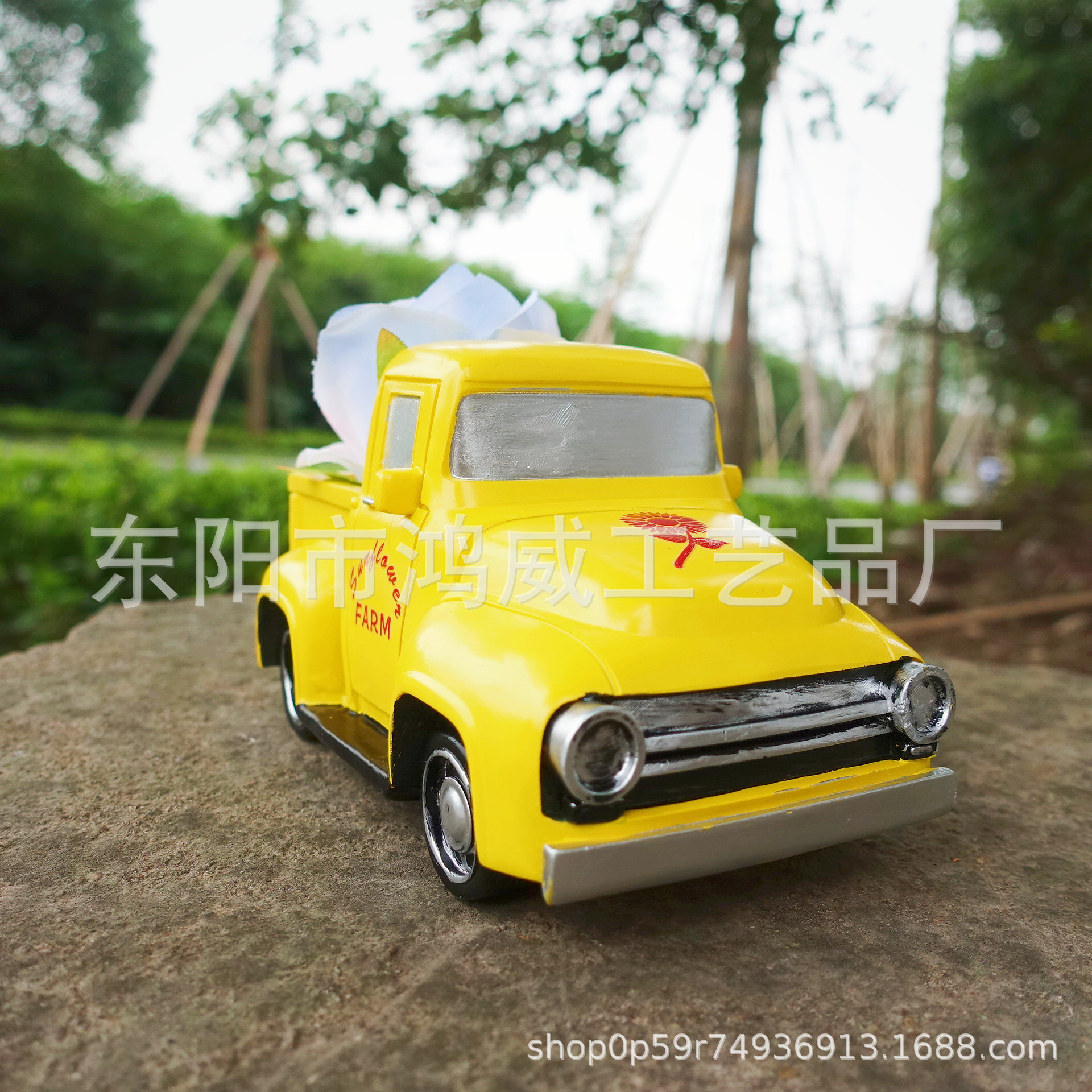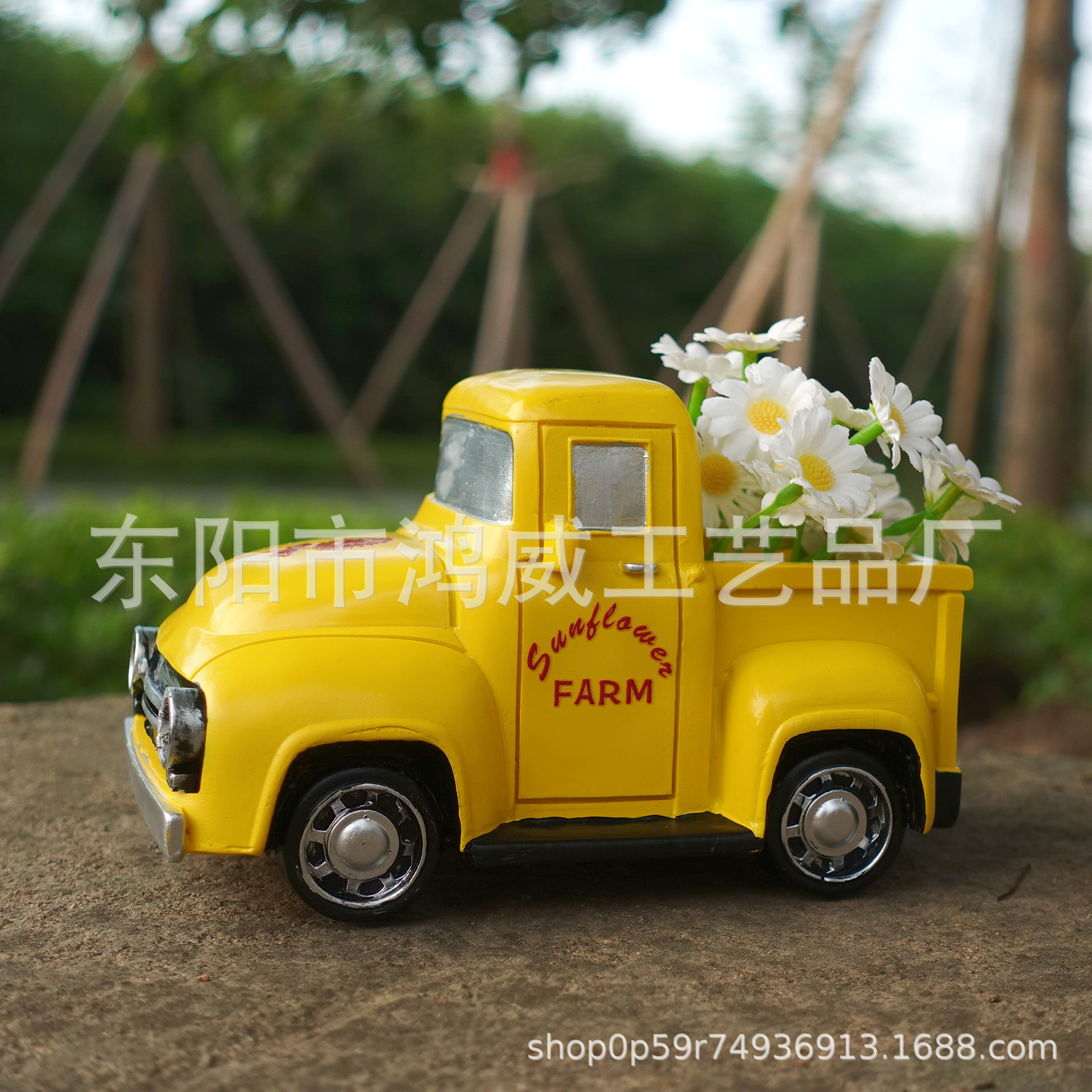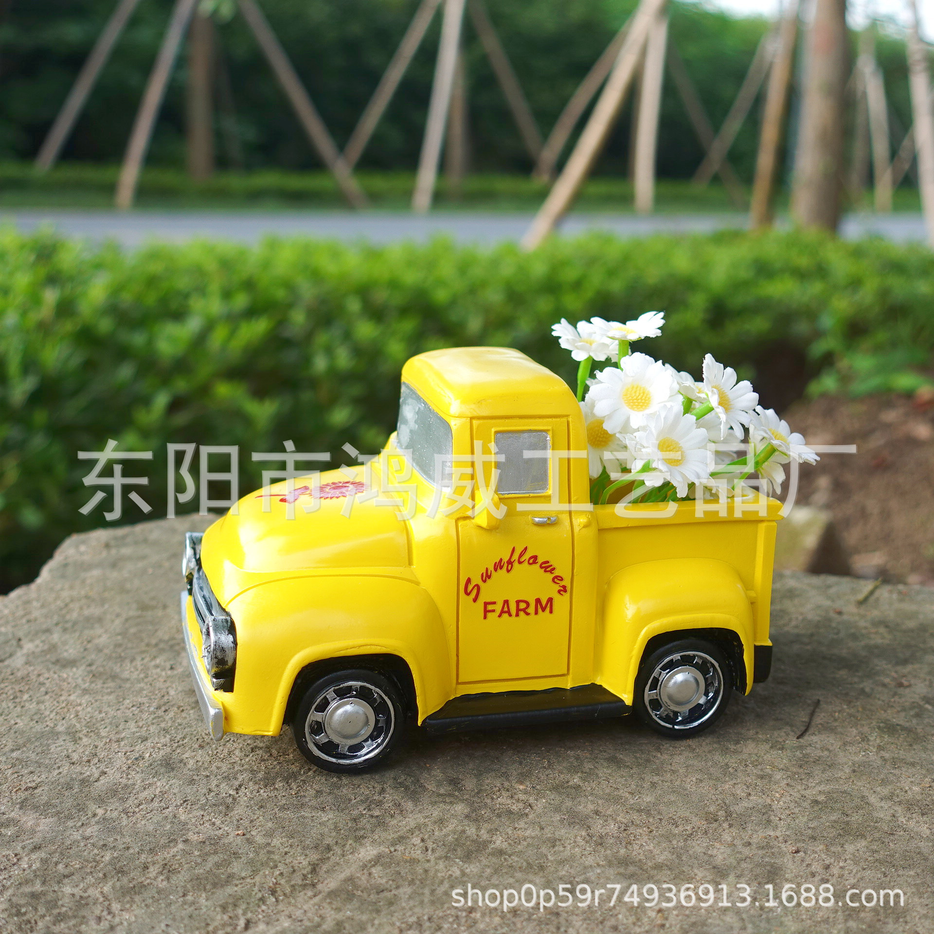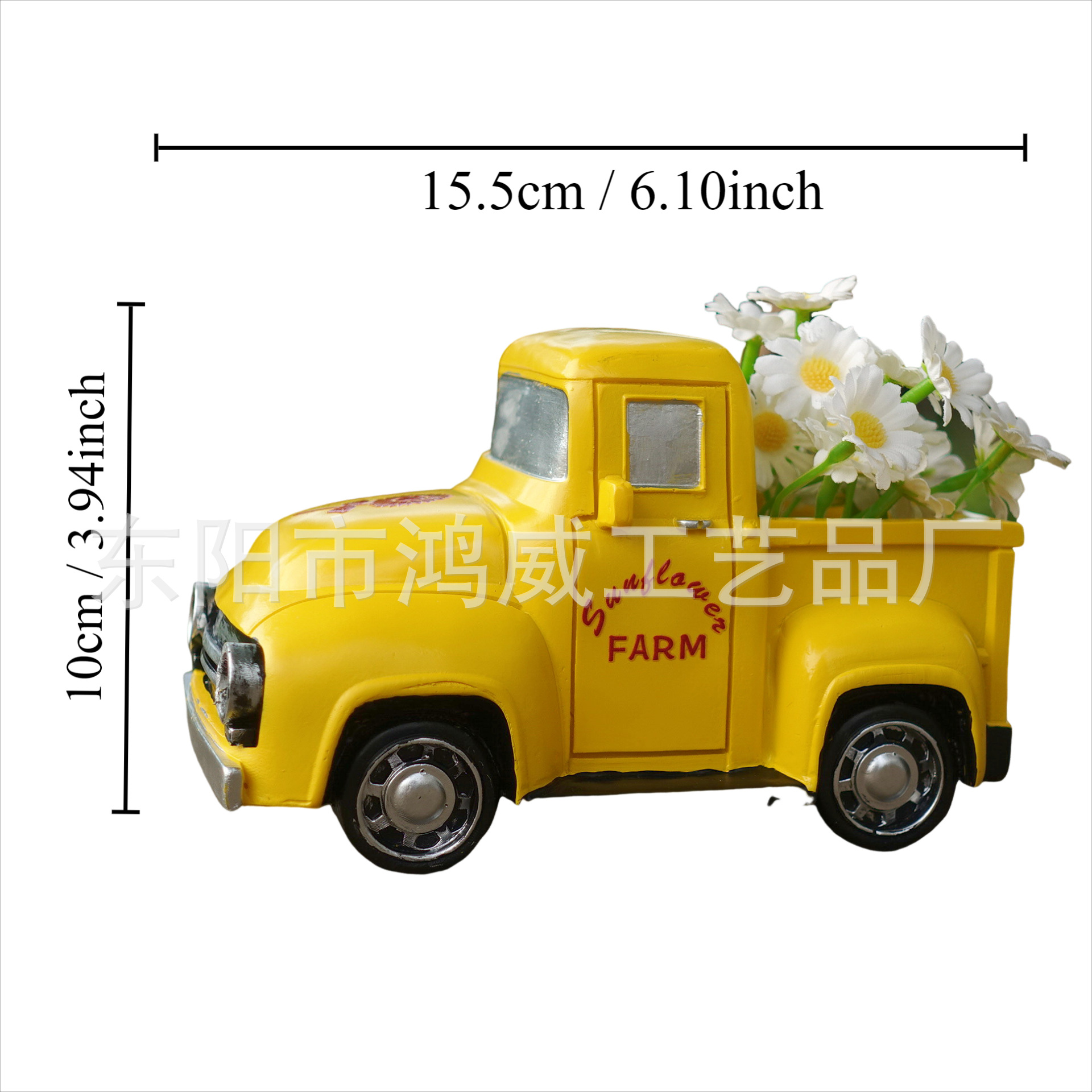새로운 국경 노란 꽃 트럭 여름 야외 동상 수지 공예 홈 정원 장식 장식품스토어 가기