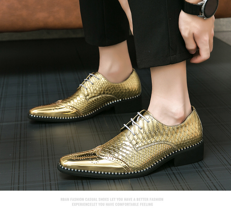 AliExpress 아마존 국경 간 골든 브라이트 비즈니스 브록 가죽 신발 유럽과 미국의 패션 플러스 사이즈 레이스 업 더비 신발