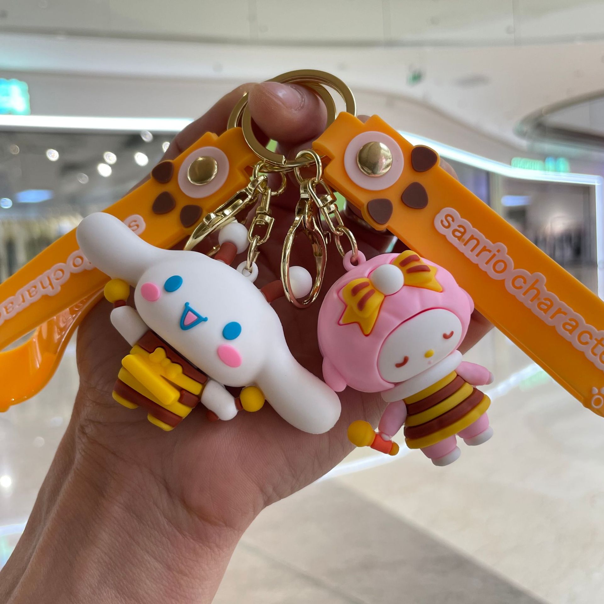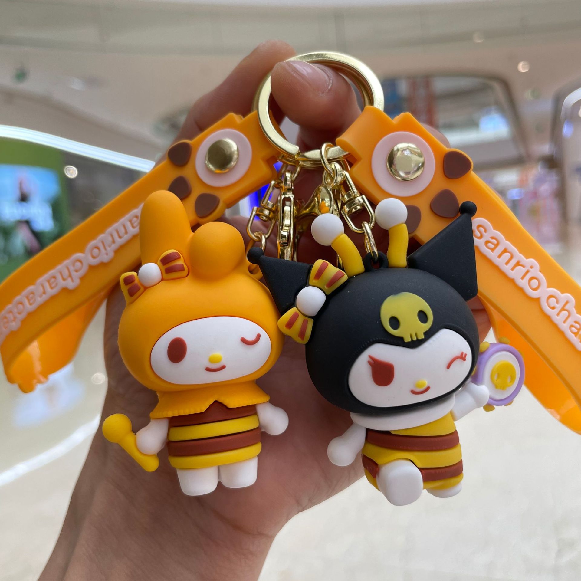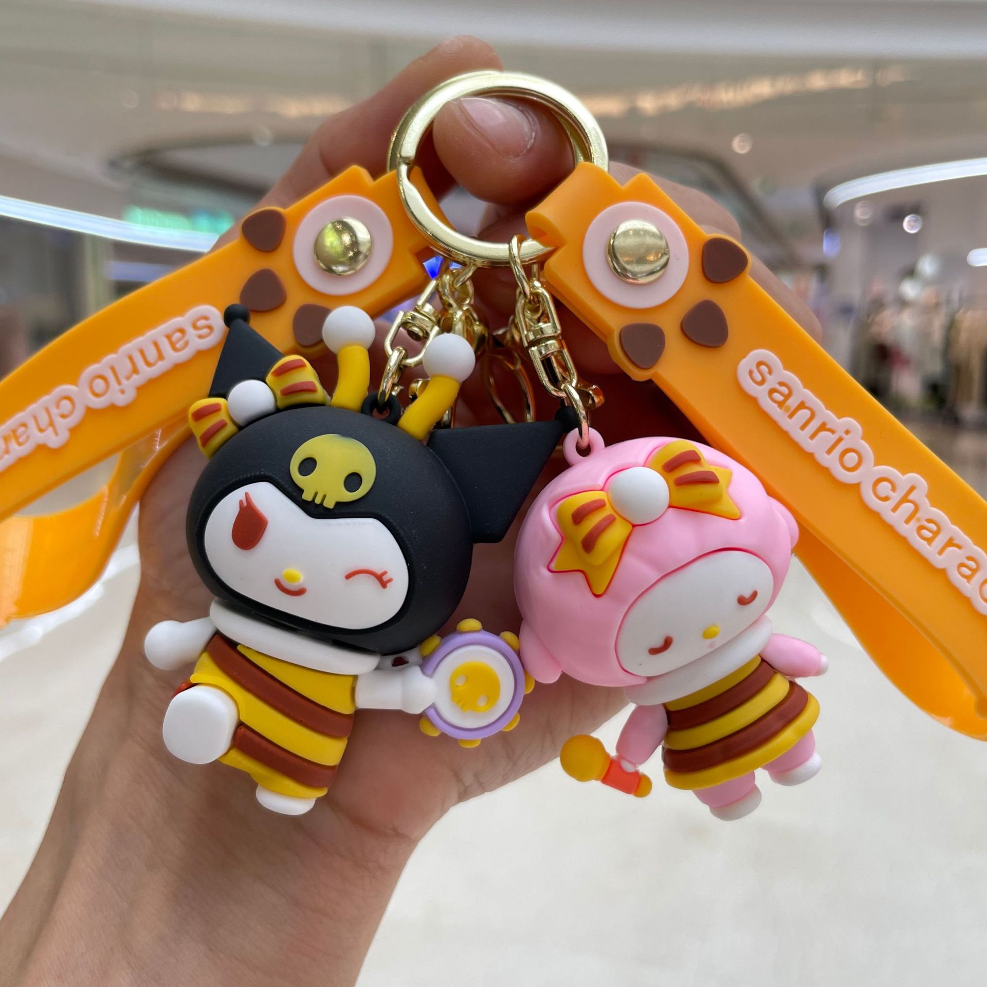 Bee Sanrio 키 체인 Kulomi 인형 귀여운 학교 가방 펜던트 자동차 키 체인 교수형 작은 선물스토어 가기
