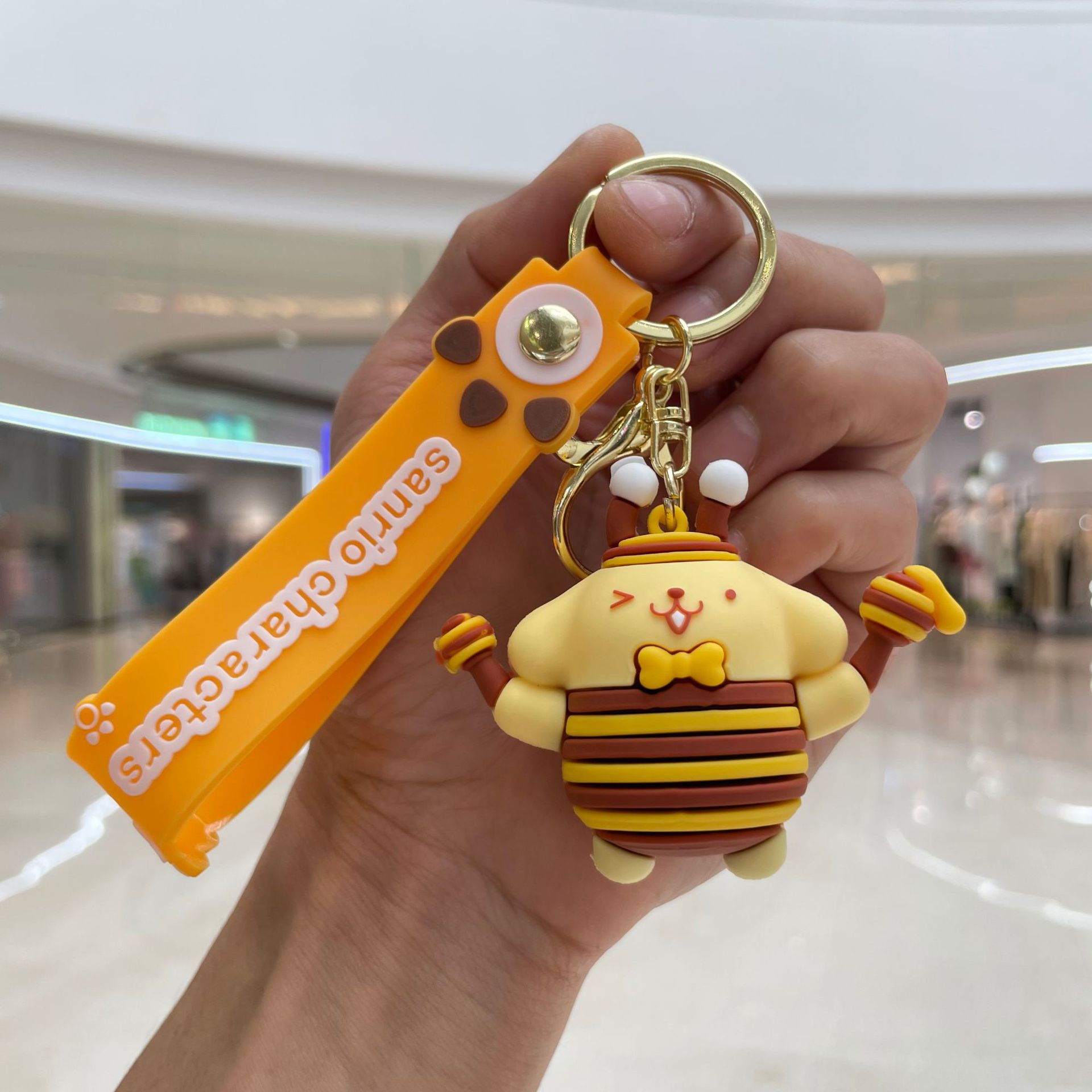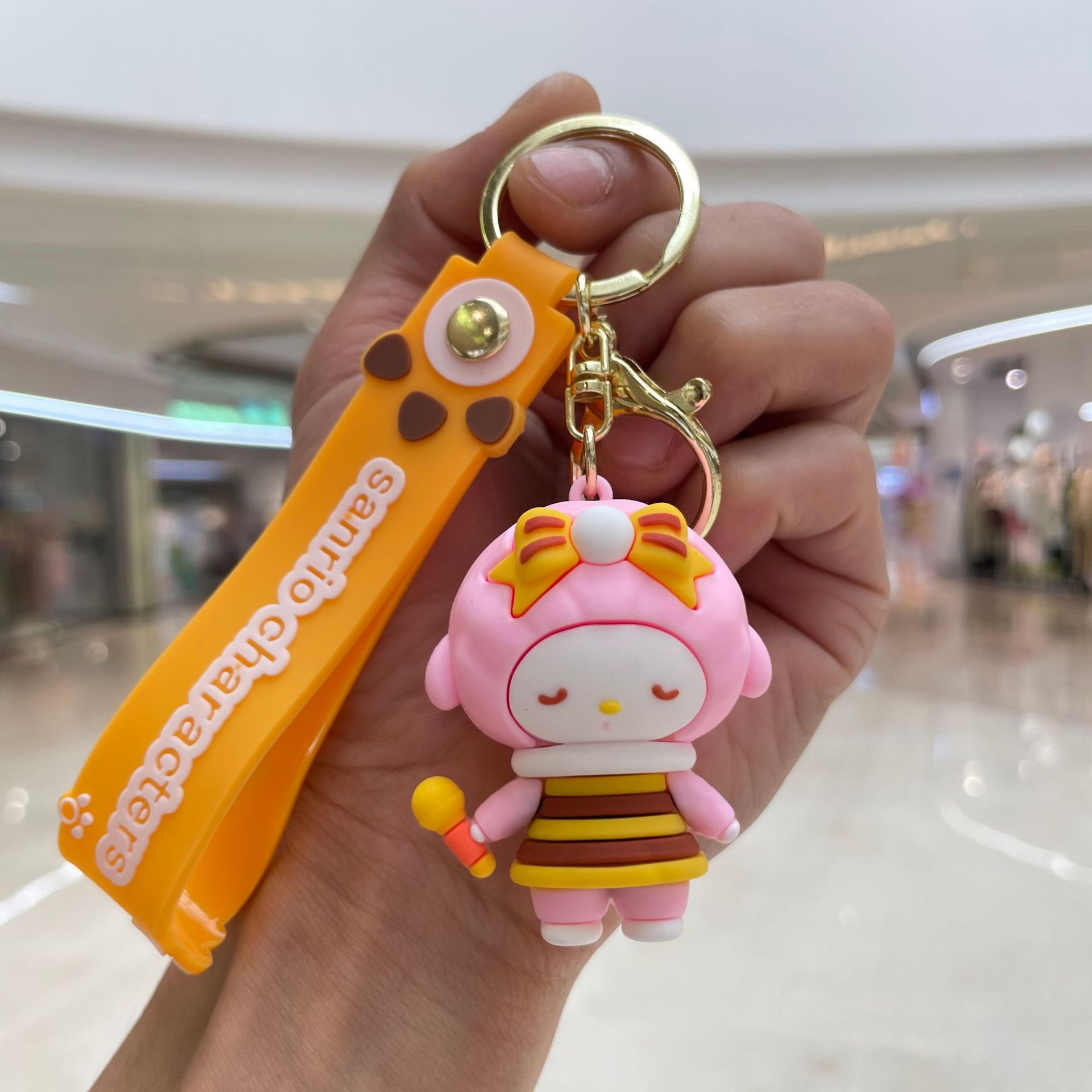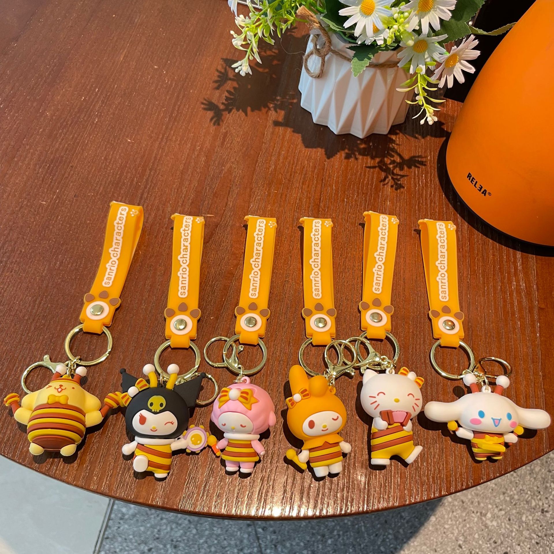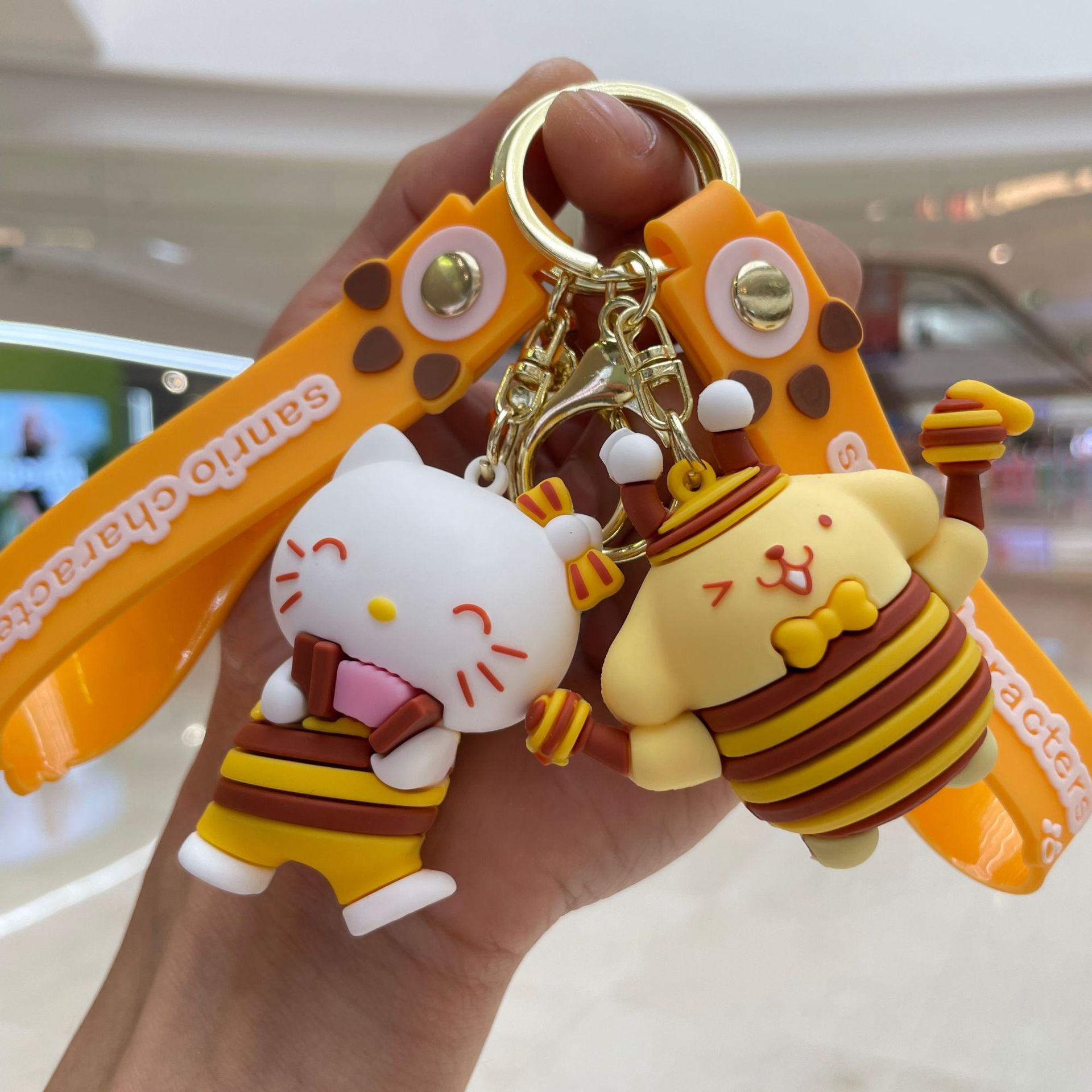 Bee Sanrio 키 체인 Kulomi 인형 귀여운 학교 가방 펜던트 자동차 키 체인 교수형 작은 선물스토어 가기